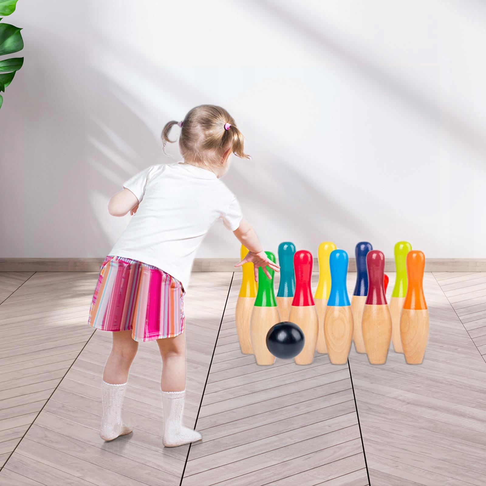 wood Kids Bowling Toy 10 Bottles Advanced Sports