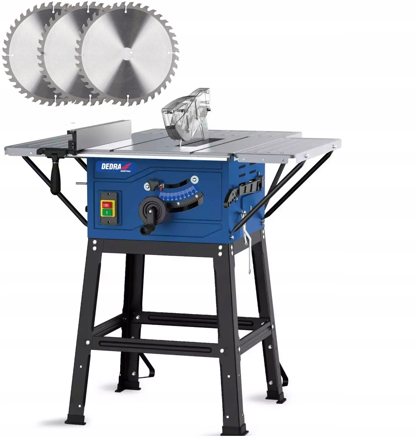 dedra ded7754t3 диск таблеток в наборе с пилой существует 3 диска 2010 мм и количество зубов 24, 40 и 60 . Диски будут работать для разрезания дерева, сопоставки с ламинированным покрытием или без ламинированного покрытия, деревянной крышки. Это позволяет вам разрезать точное, быстрое, вдоль или через деревянные волокна. Эти диски также могут быть использованы для пластика или плексигласа. 2000 Вт мощности двигателя, экранист диаметром 254 мм и максимальная скорость 4800 об/мин обеспечивает эффективную и точную резку. Рабочая таблица имеет возможность расширить с трех сторон на стабильные дополнительные рабочие таблицы. Оборудование включает в себя элементы, позволяющие расширить поверхность столешницы. Размеры основной рабочей таблицы составляют 630 х 546 мм. 2 дополнительные с коротких сторон: 630 х 190 мм. 1 дополнительная с длинной стороной: 540 x 250 мм.