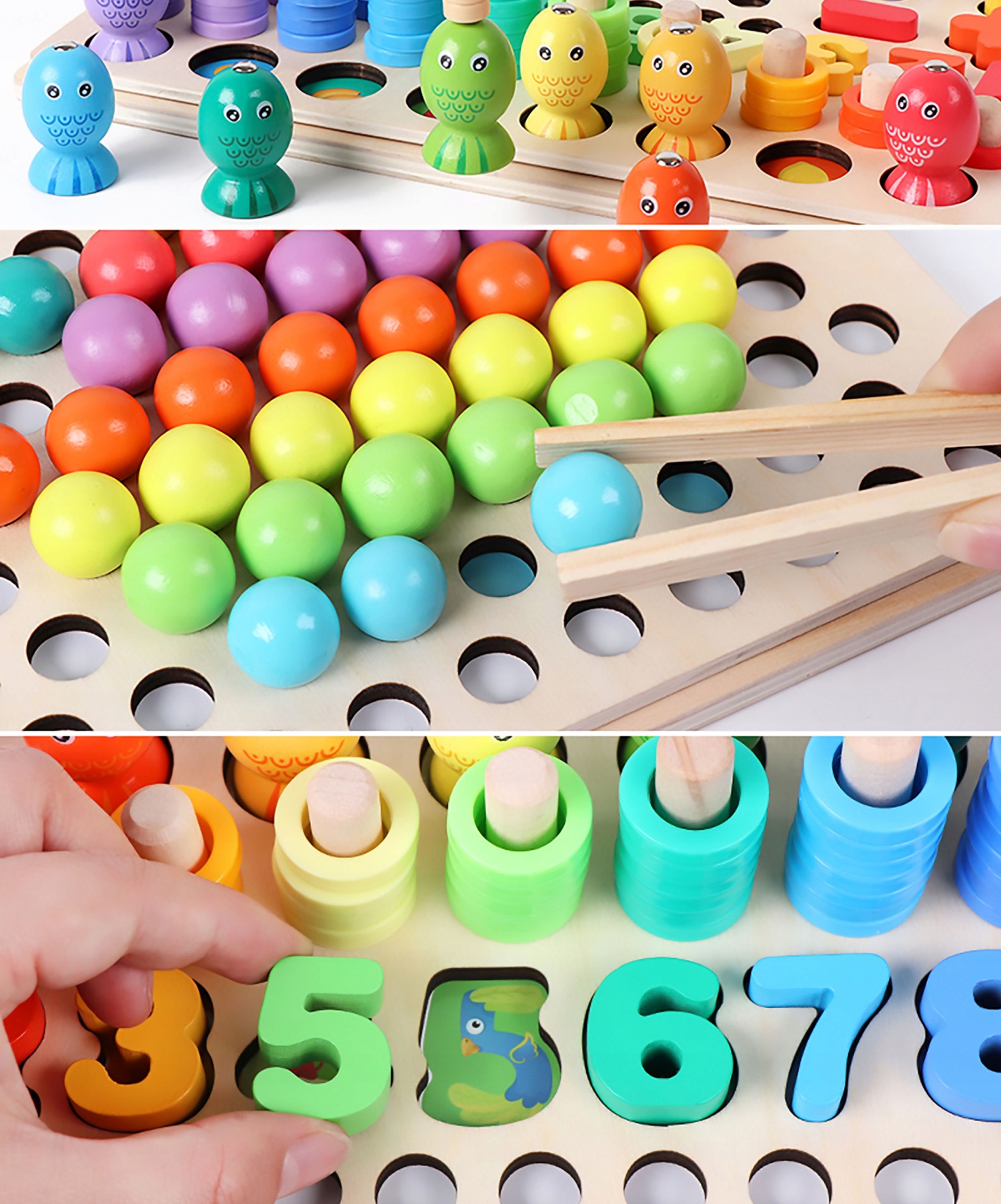 ДЕРЕВЯННЫЙ ПАЗЛ - ШАРИКИ - РЫБАЛКА - МОНТЕССОРИ