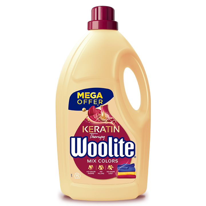 Woolite позволяет еще более эффективно ухаживать за тканями, вводя в состав моющих средств кератин, известный своими уникальными свойствами по уходу за волосами. Кератин заботится о них и регенерирует, проявляя отличные защитные, увлажняющие и разглаживающие свойства. По этой причине его охотно используют крупнейшие мировые производители косметики по уходу за волосами.