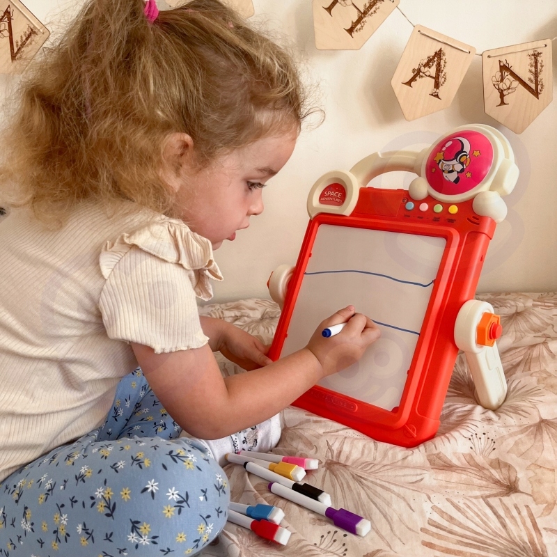 Ищете игрушку, которая не только развлечет, но и научит? Это уникальная развивающая доска 2-в-1 от WOOPIE — творческий игровой центр для детей. Игрушка совмещает в себе функции доски для рисования цветными маркерами и доски для расстановки кубиков типа «Тетрис». Доска для рисования содержит 8 маркеров, губку для стирания и 18 двусторонних стираемых карточек для раскрашивания или письма. На другой стороне доски расположен забавный пазл-тетрис, который заинтересует каждого ребенка и разовьет его воображение и творческое мышление. Красочные блоки можно располагать вертикально или плоско, создавая интересные фигуры и картинки или отдельные 3D-здания. Веселье дополнят 4 встроенные музыкальные кнопки. Подобные часы на корпусе помогут научиться определять время.