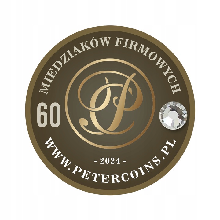 Аверс монеты содержит постоянные элементы в виде надписи: 60 или 30 COMPANY COMPERS и наклеенный циркон Preciosa ss 30. диаметром около 6 мм (можно без цирконов).