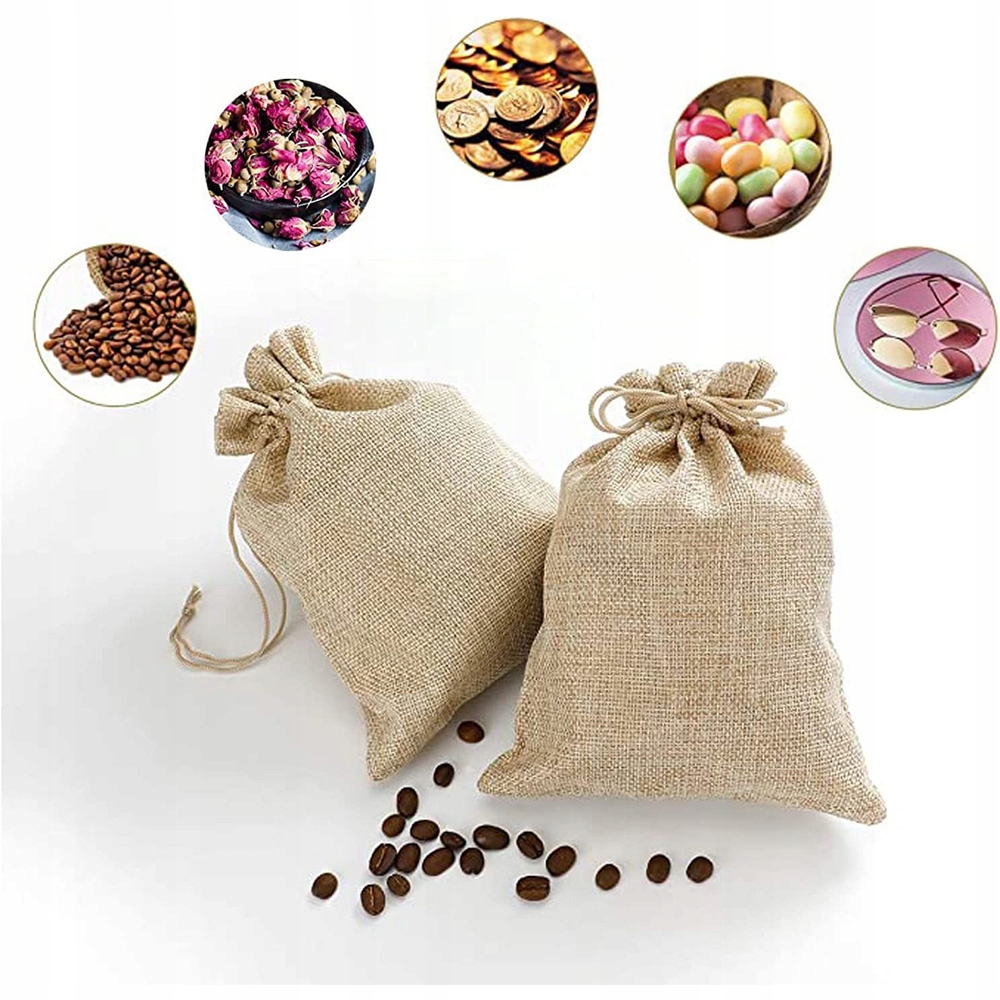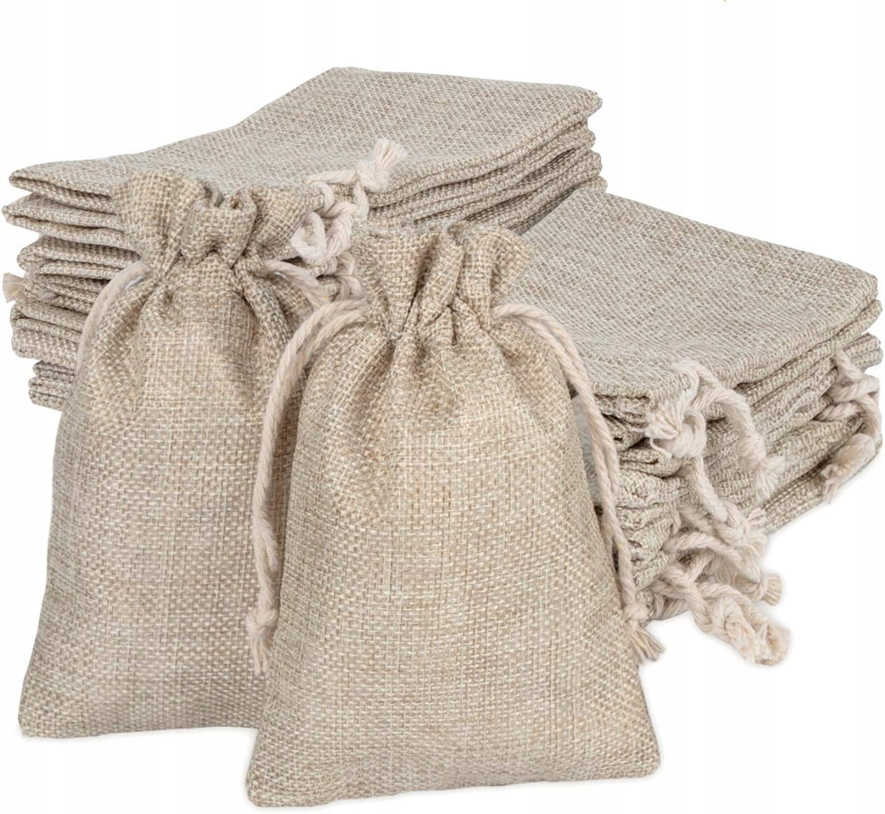 WORECZKI NA PREZENTY ZIOŁA LNIANE JUTOWE MATERIAŁOWE ZE SZNURKIEM 50 SZTUK