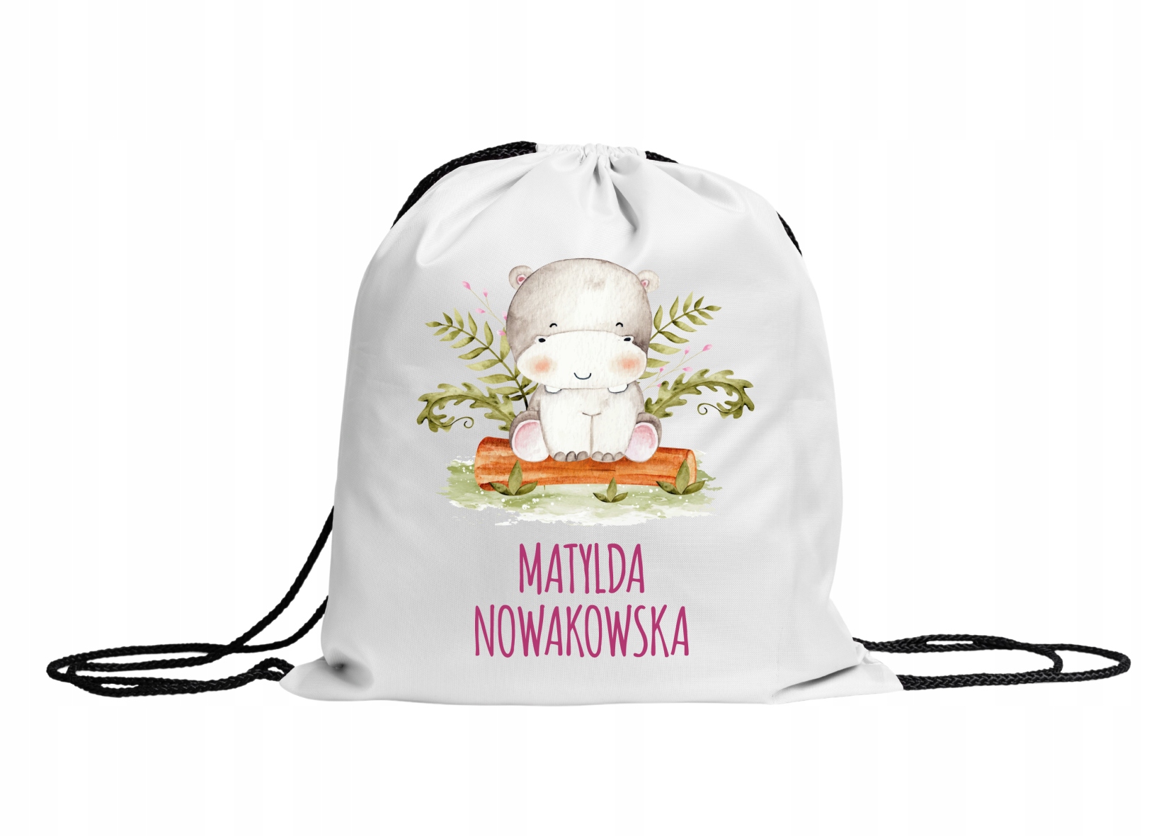 WOREK PLECAK do przedszkola szkoły miś HIPOPOTAM + dowolne imię
