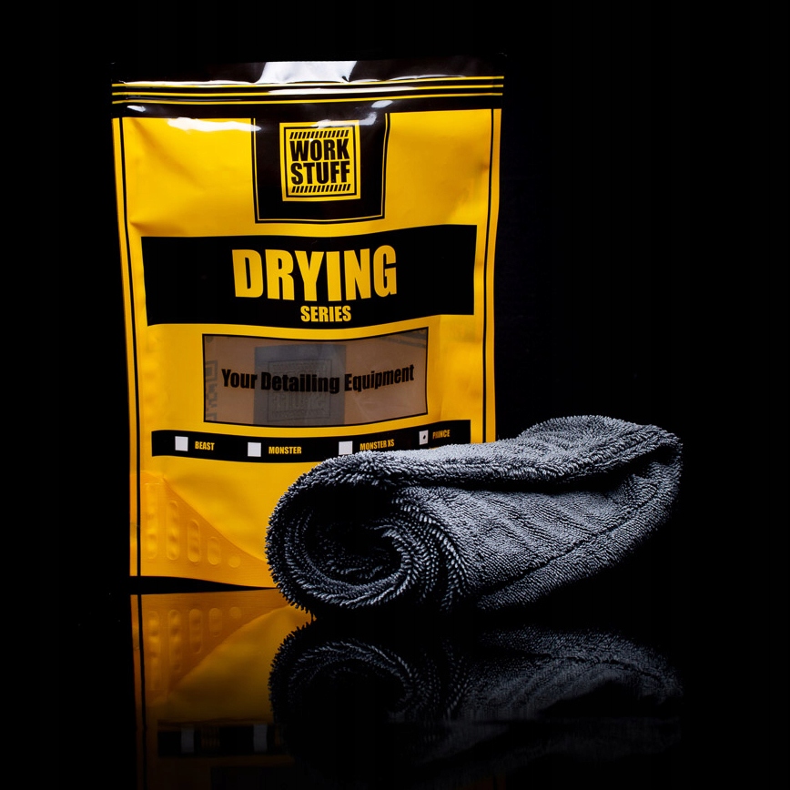 WORK STUFF Prince занимает первое место в категории полотенец для сушки тела. Большой размер (55х50см) позволяет удобно ориентироваться по красочной поверхности. Уникальный вес 1100 г/м² и высокая впитывающая способность позволяют высушить большой автомобиль, не оставив ни капли воды. Полотенце изготовлено очень аккуратно, что снижает риск поцарапать краску. Настоящий номер один среди полотенец из микрофибры. Из-за его мягкости и пушистости мы часто задаемся вопросом, как он будет смотреться в ванной :)