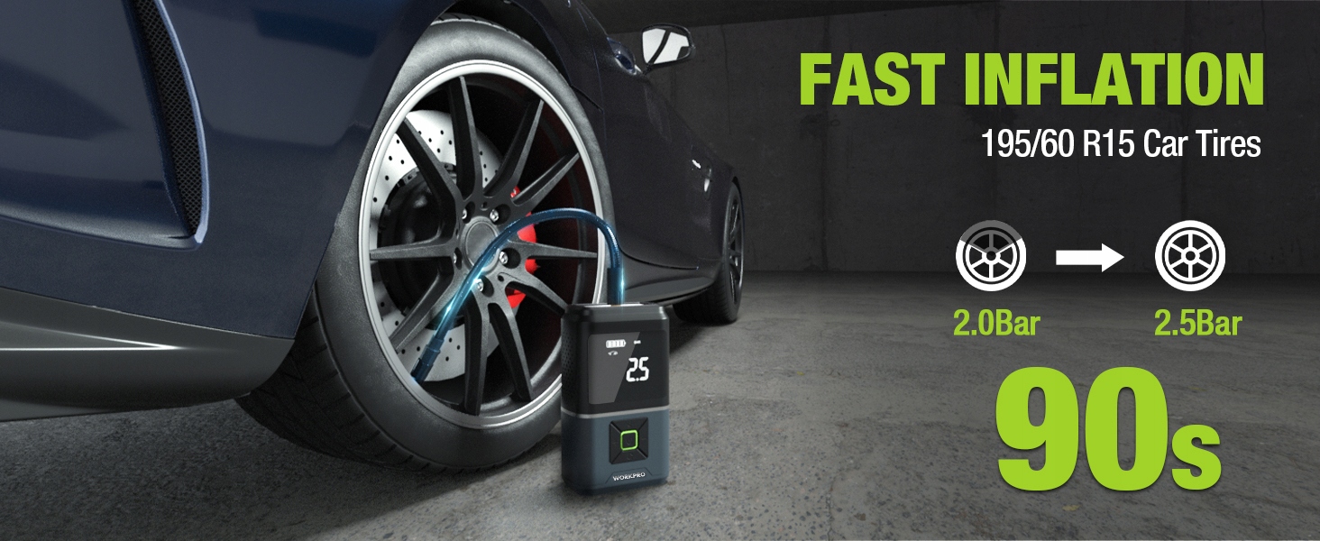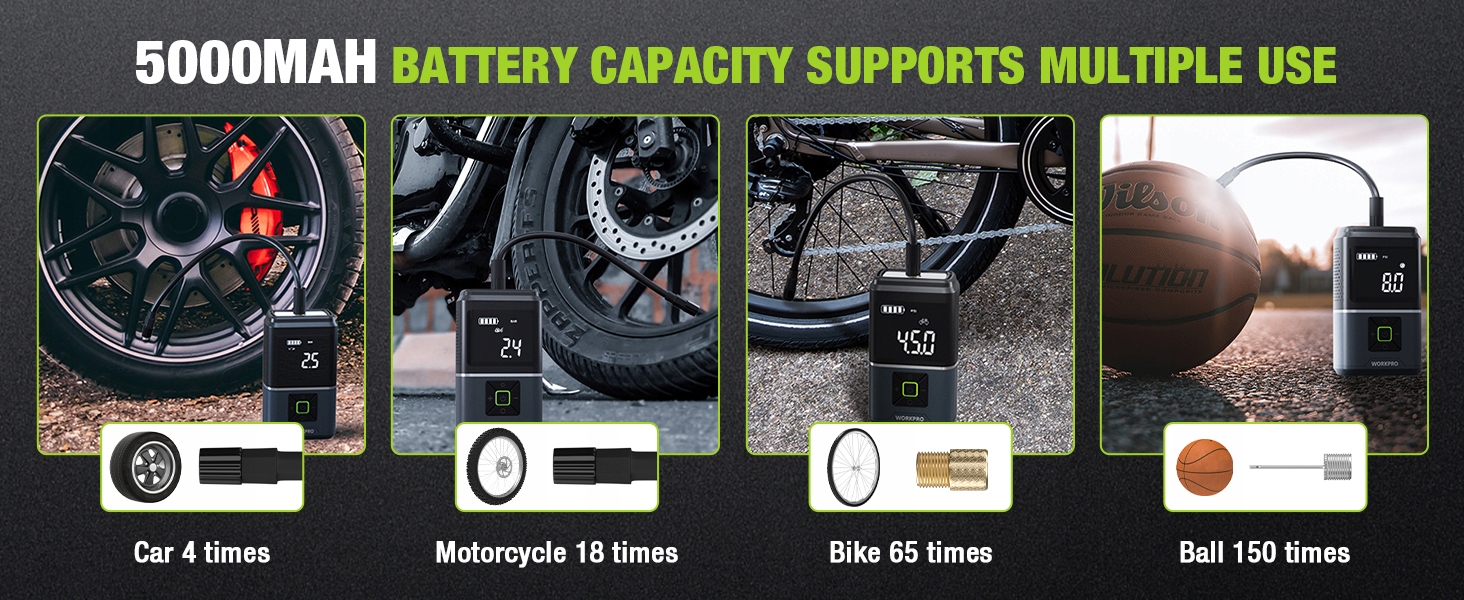 WorkPro Wireless Compressor 150 фунтов на квадратный дюйм 2500 мАч светодиода для автомобиля, велосипеда, шариков