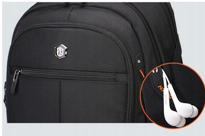 рюкзак имеет специальное отверстие для наушников, благодаря которой телефон может оставаться внутри рюкзака.