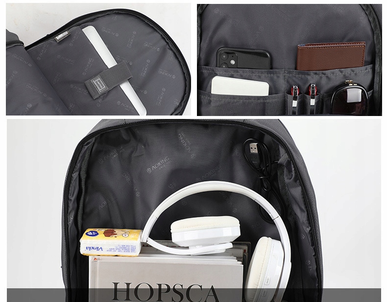 два -хамбер рюкзак для ноутбука до 16,4 дюйма из aling . Очень хорошо сшит и разработал рюкзак для ноутбука с простой дизайном. Изготовлен из долговечного и водонепроницаемого . Первая задняя камера с задним турниром очень плоская, и содержит карманные карты 1 -й задняя камера. Липучка) и пространство для документов. Он защищен очень мягкой, задней стеной рюкзака, благодаря которой он очень хорошо защищает ноутбук от шоков и даже падения рюкзака. Во второй, очень вместительной камере вы найдете подходящее количество места для упаковки одежды в течение нескольких дней поездки . Тем не менее, передняя часть рюкзака имеет хорошо -организованный перегородка с карманами , в котором вы можете соответствовать: планшет до 10 дюймов, телефон, ноутбук, мощный банк, ручки, ключи и все другие наиболее необходимые вещи. Дизайнеры рюкзаки также подумали о Music LLAD и разработали специальные на кабеле для наушников. Не нужно вытащить банк питания из рюкзака, чтобы зарядить телефон или другое портативное устройство.