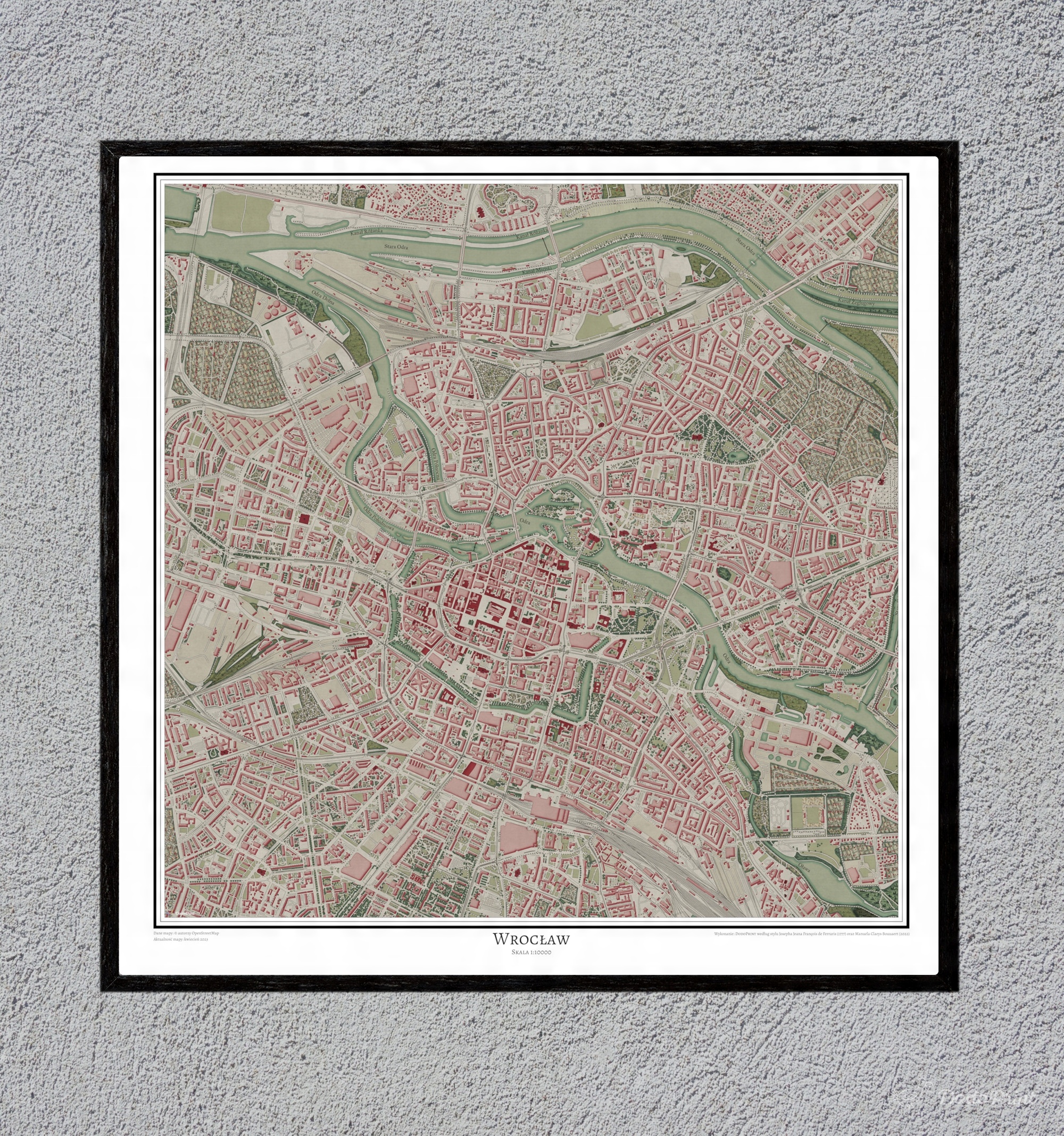Это не перепечатка или воспроизведение старой карты – это современный вид столицы. Нижней Силезии (по состоянию на апрель 2023 г.) в стиле картографов восемнадцатого века. Дизайн разработан DodoPrint.