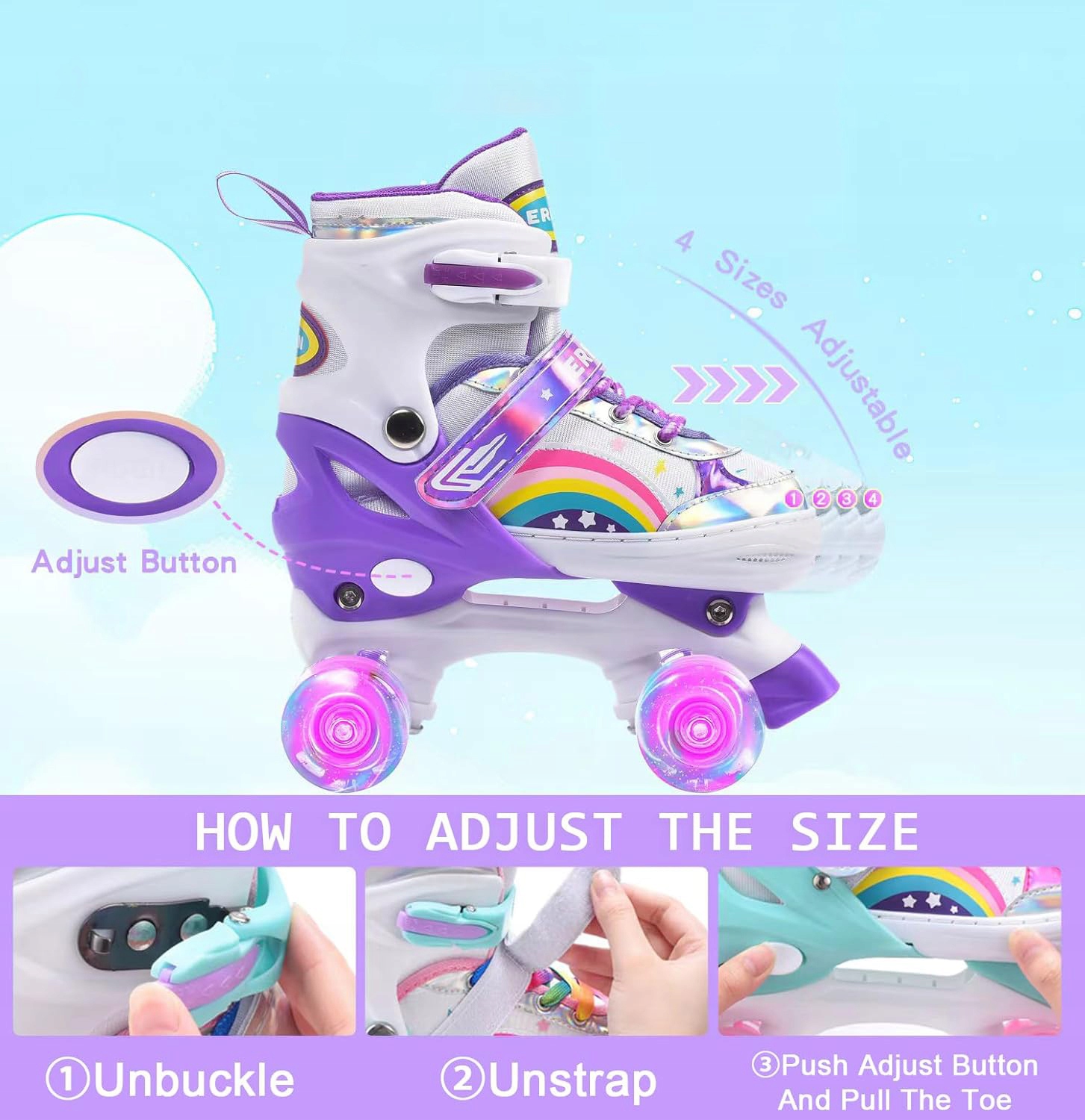 ✨「 4-умеренные регулируемые ролики 」 h2> - растут с 4-средством регулируемой обуви b>, идеальный выбор для взросления детей, освобождаясь от забот, связанных с необходимостью быстро покупать другую пару. Легкая и удобная кнопка для регулировки размера, найдите идеальную подгону