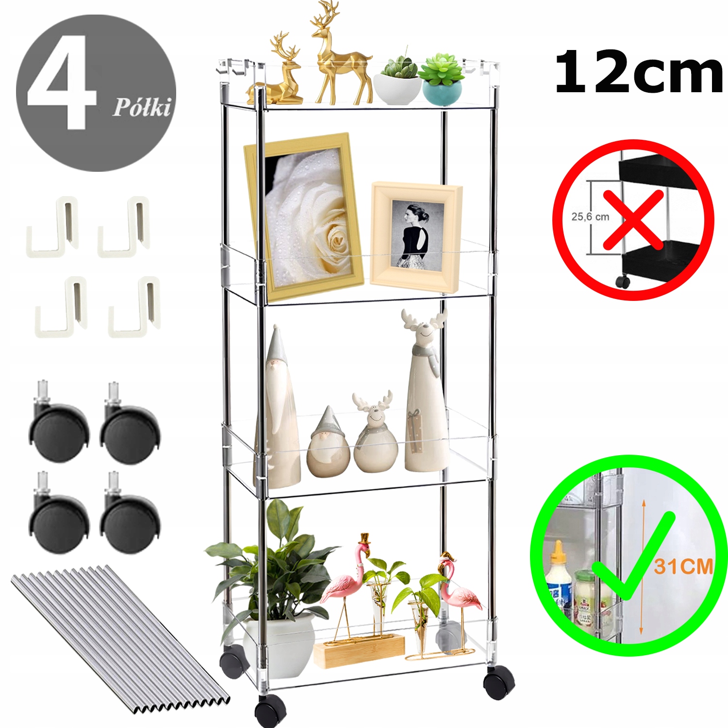 WĄSKA REGAŁ SZAFKA PÓŁKA ŁAZIENKOWA KUCHENNA NA KÓŁKACH12cm4PÓŁKI ОРГАНІЗАТОР