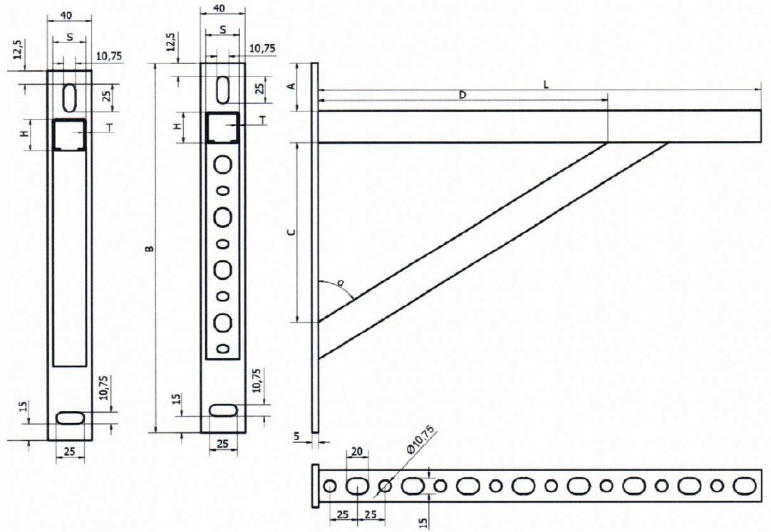 Wspornik ścienny perforowany konsola ocynk 500mm