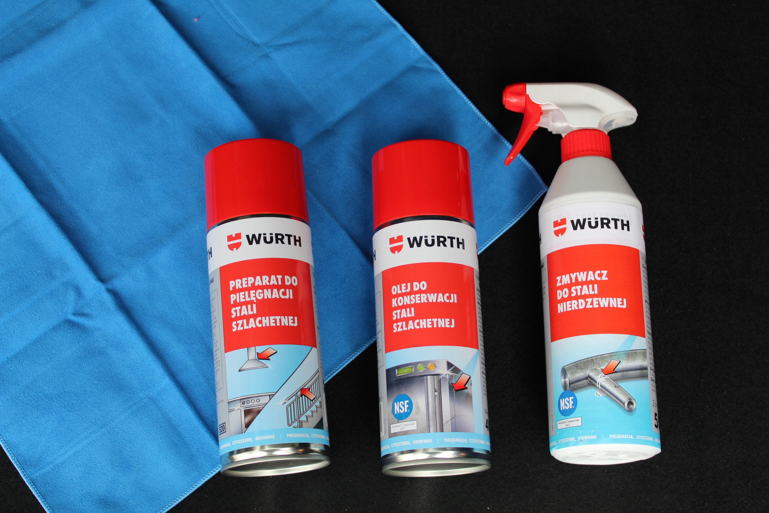 Для комплексного ухода и очистки нержавеющей стали WURTH также предлагает интенсивное чистящее средство, полировальную пасту, чистящие салфетки и обслуживание масла.