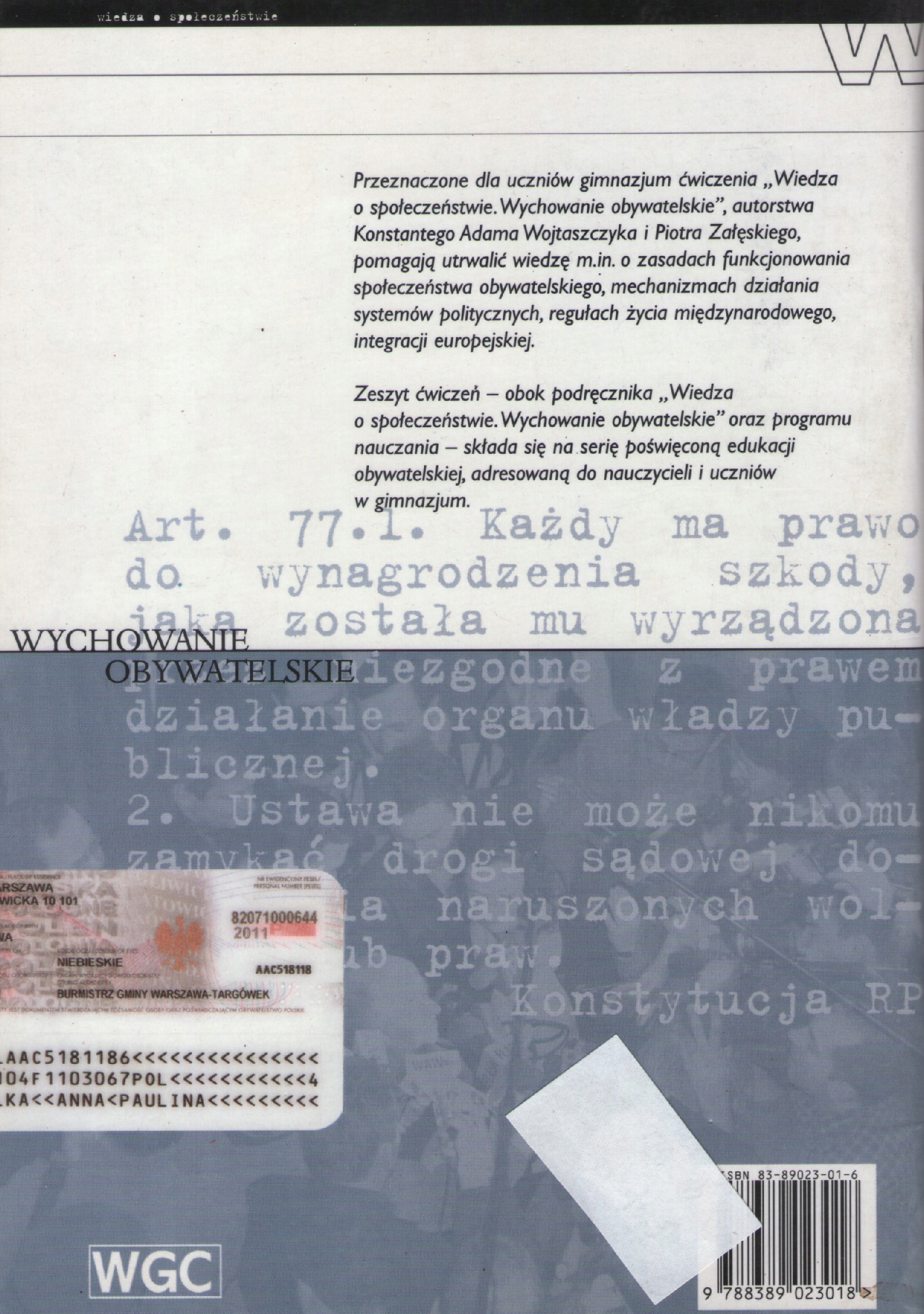 Оплачивая «Wychowanie obywatelskie wiedza o społeczeństwie ćw» данный товар из каталога «КОСС, ВОС» вы можете быть уверены, что после оформления заказа, доставки в Украину, вы получите именно то, что заказывали, в оговоренные сроки и европейского качества.