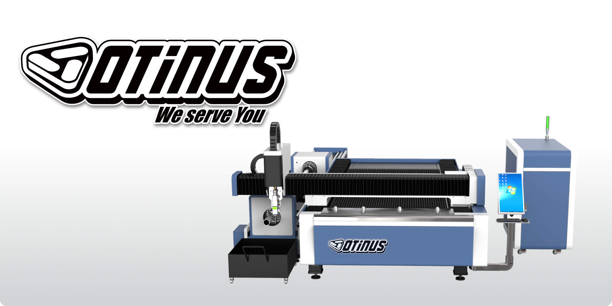 Станок оснащен поворотным столом, задачей которого является позиционирование профиля относительно лазерной головки. Это решение позволяет легко резать трубы и различные типы плоских профилей, в том числе прорезать кромки.