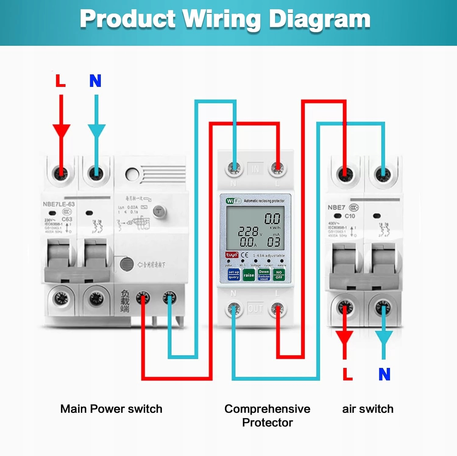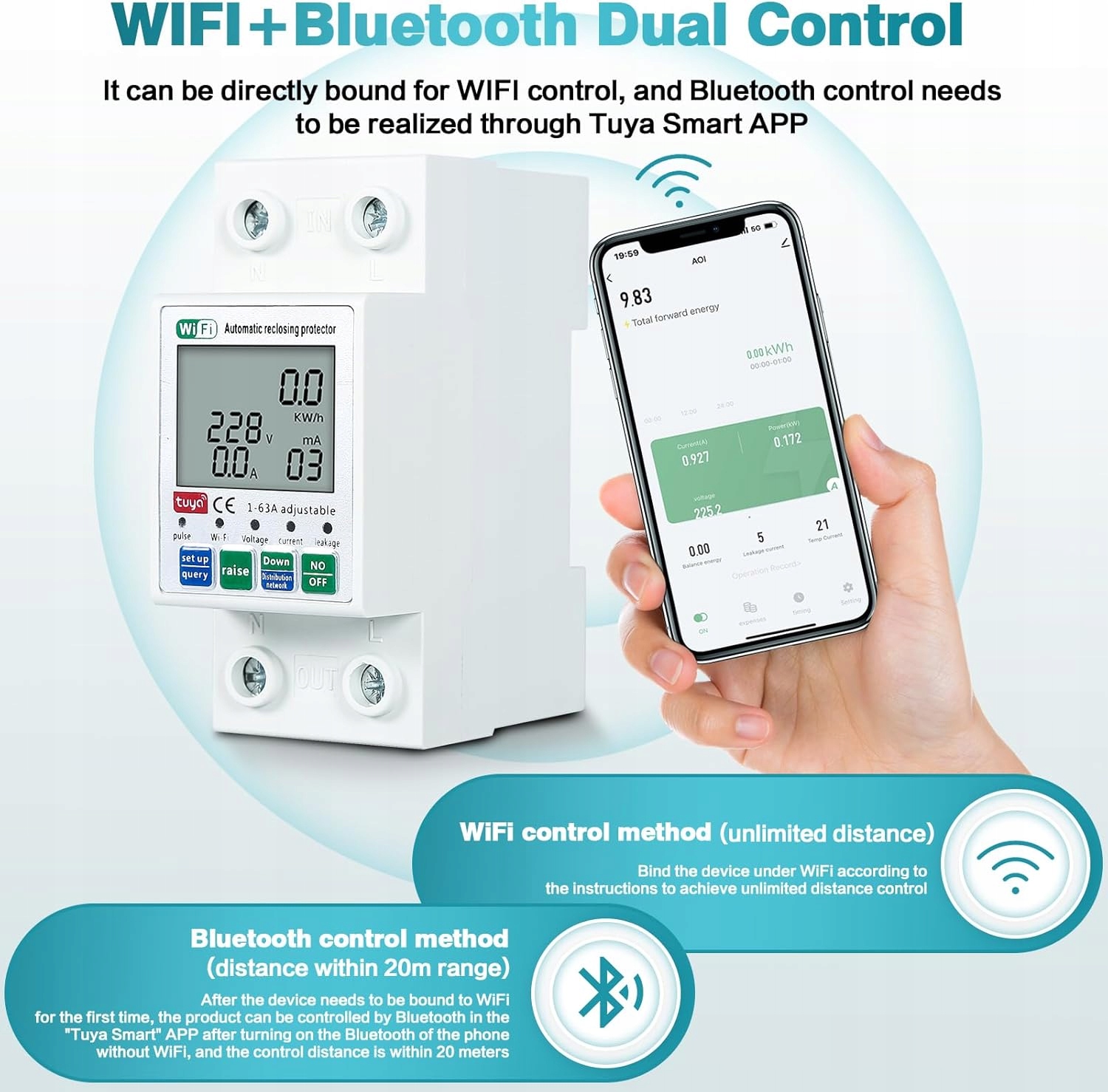 Wyłączników Licznik prądu energii TUYA WiFi Ochrona przed wyciekiem 63A