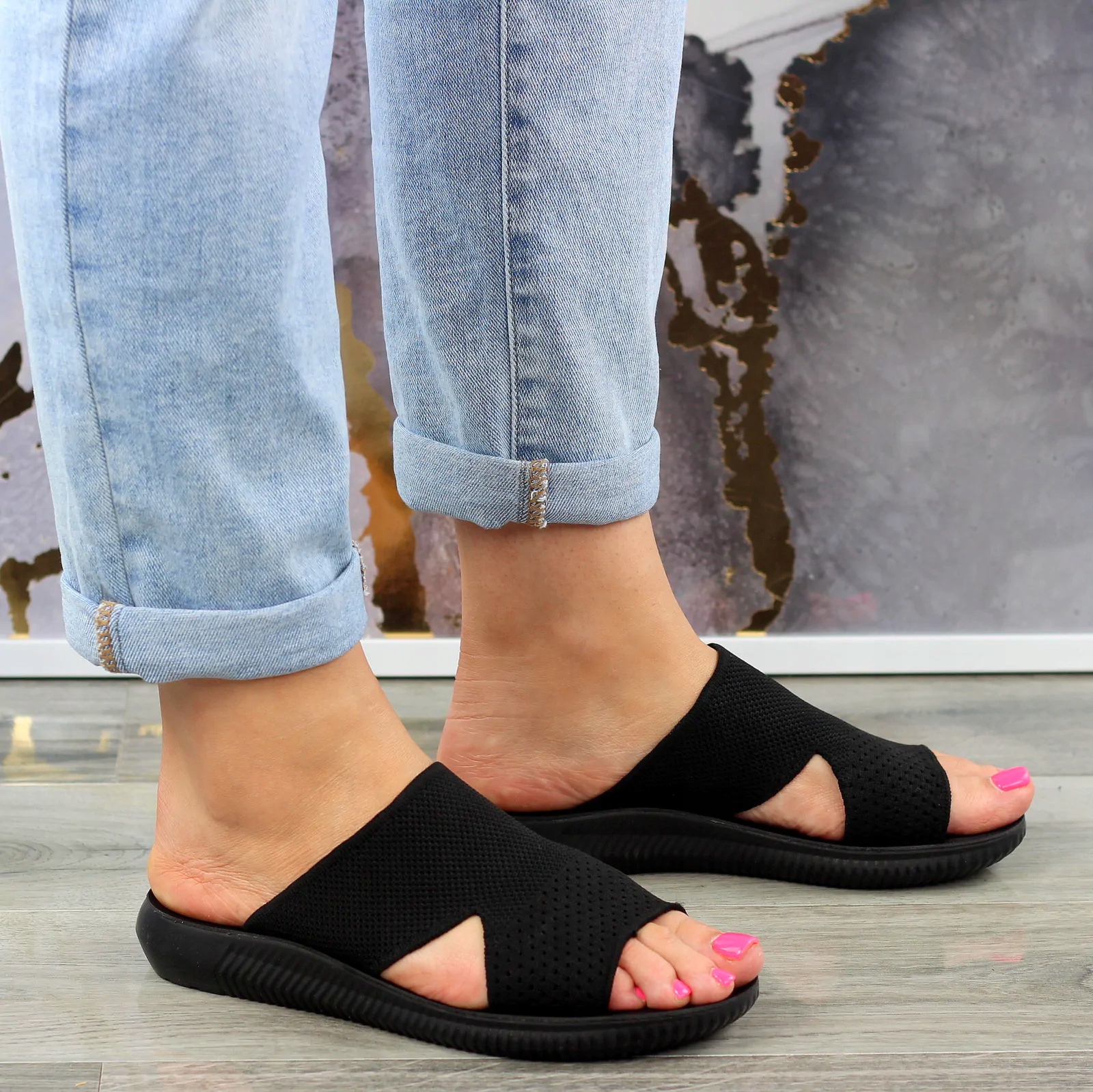 КОМФОРТНЫЕ ЧЕРНЫЕ СПОРТИВНЫЕ ЭЛАСТИЧНЫЕ ЖЕНСКИЕ ТАПОЧКИ