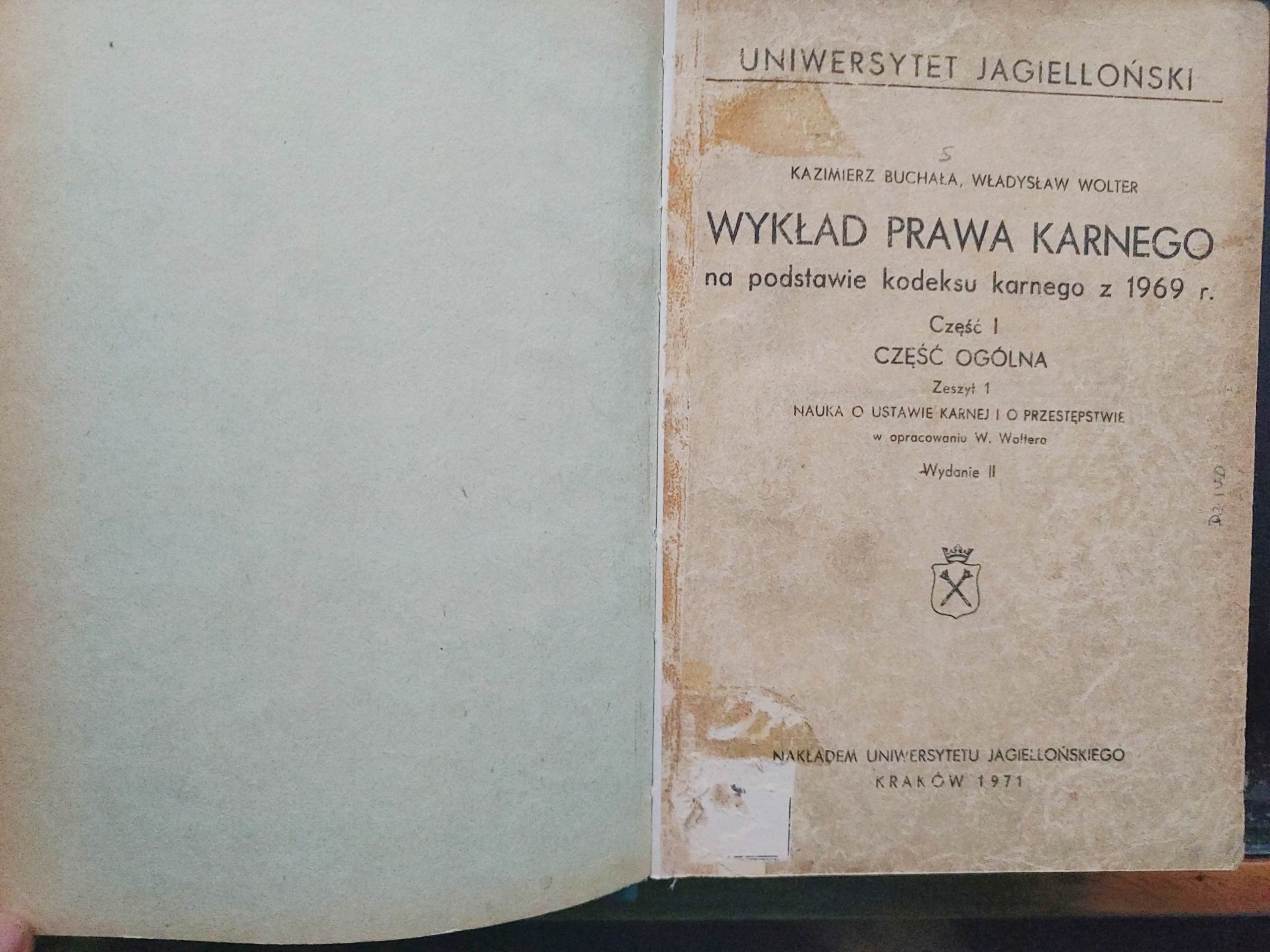 Wykład Prawa Karnego Nauka o Ustawie Karnej i Przestępstwie. Buchała Wolter