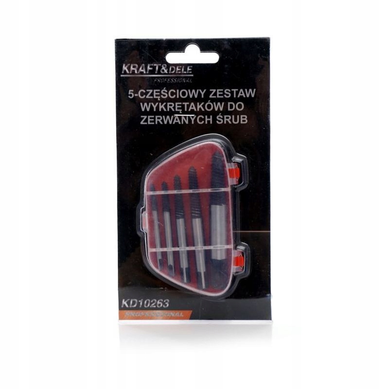 Профессиональный набор экстракторов для сломанных винтов от польского бренда Kraft&Dele, маркировка KD10263. Продукт предназначен для домашних пользователей, мастерских и рабочих мест.