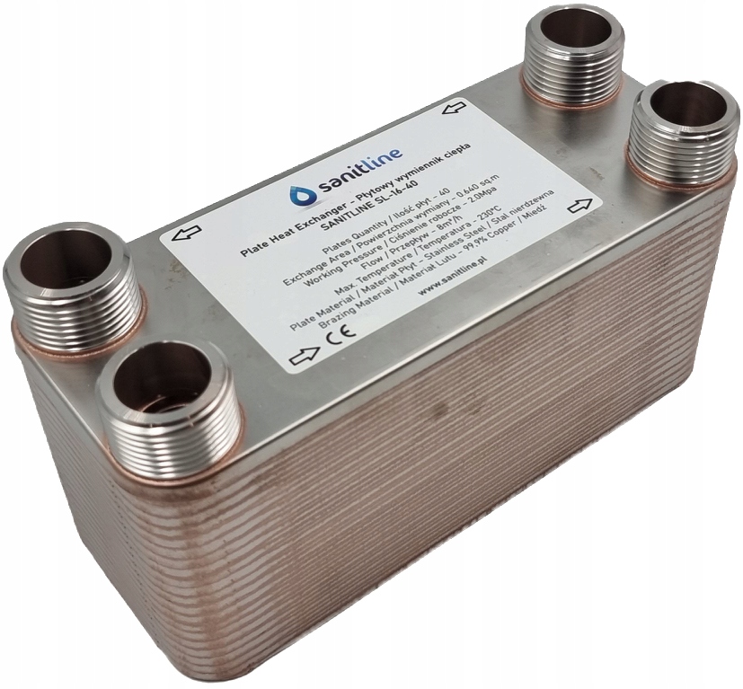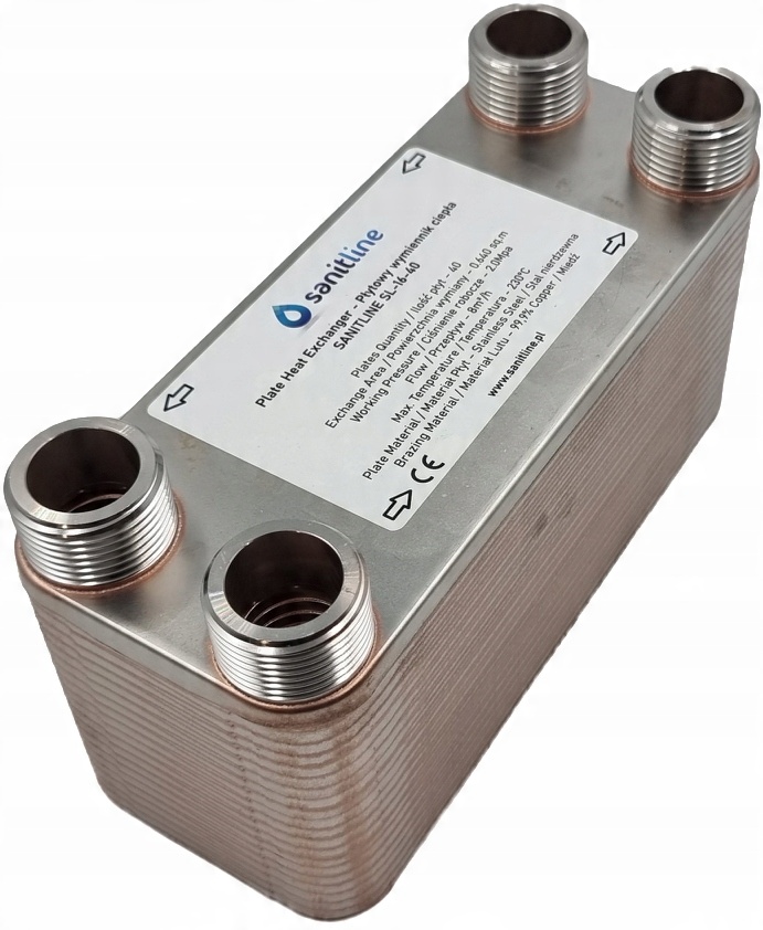 WYMIENNIK CIEPŁA SANITLINE 40 PŁYTOWY MOC 50kW 4 x 1" + IZOLACJA TERMICZNA