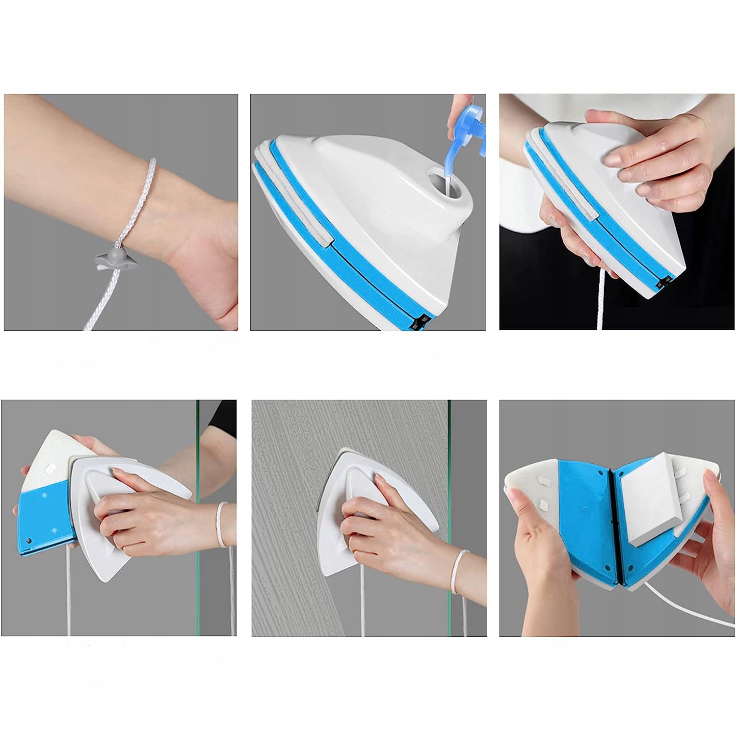 Этот магнитный мойщик окон оснащен более прочным страховочным тросом длиной 2,5 м, предотвращающим падение.