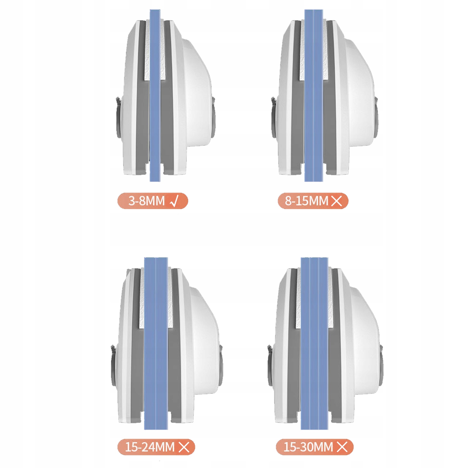 Перед размещением заказа проверьте толщину вашего стекла и выберите подходящий размер.