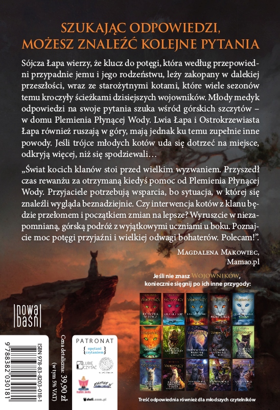 <р> Воробей верит, что ключ к силе, которая, согласно предсказаниям, придет к нему и его братьям и сестрам, похоронен в далеком прошлом, вместе с древними кошками, которые много сезонов назад шли по тропам сегодняшних воинов. Молодой медик ищет ответы на свои вопросы среди горных вершин – в доме племени текущей воды. Львинолапка и Остролапка тоже ходят в горы, но у них совершенно разные причины для этого. Если трем молодым котятам удастся туда добраться, они откроют для себя больше, чем ожидали...----