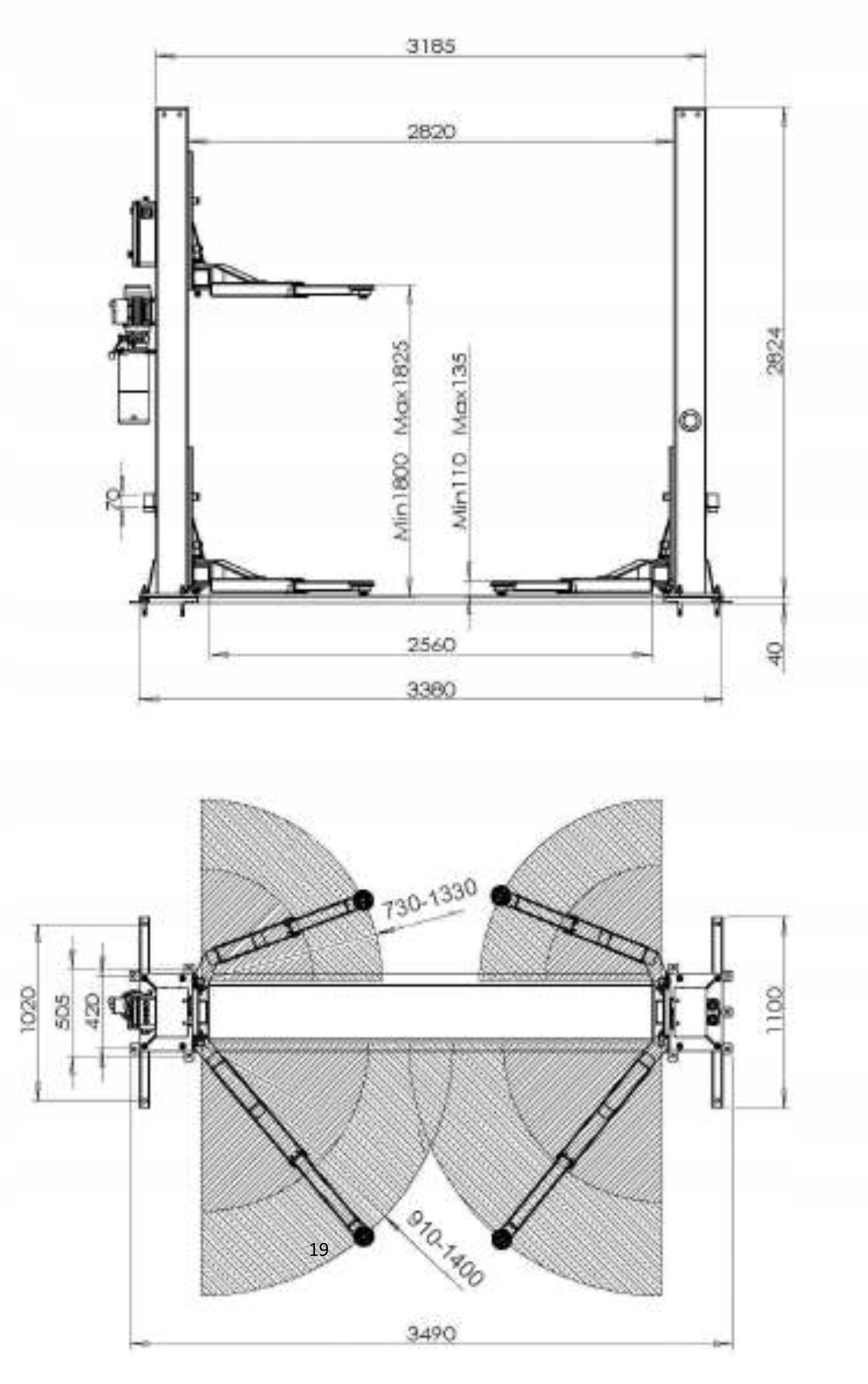 Подъемник двухстоечный АВТОМАТ ELPRO DL240R Оборудование для мастерских РАМА