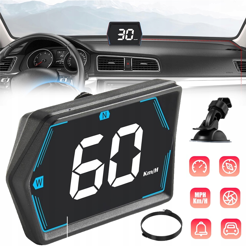 WYŚWIETLACZ SAMOCHODOWY HUD HEAD UP, TRYBY HUD, PRĘDKOŚCIOMIERZ, KM/H I MPH