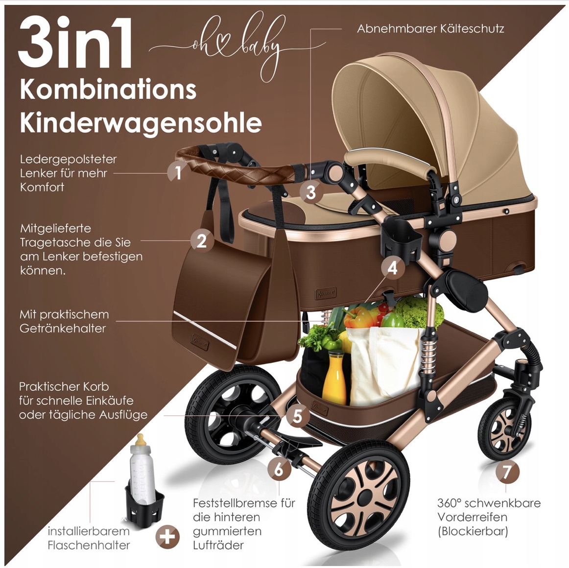 Детская коляска KESSER Loops 3в1, коричнево-бежевая