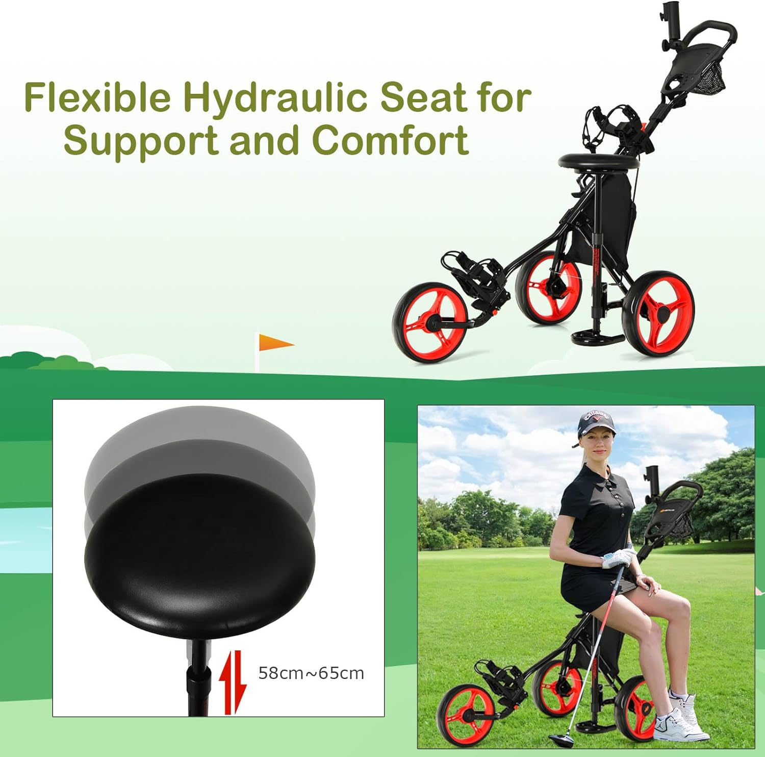 Wózek golfowy z 3 kółkami,wózek przesuwny do golfa, metalowy, czarny