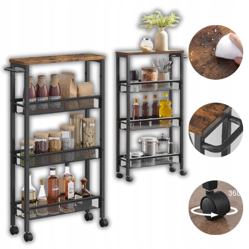 Wózek Kuchenny 4 Poziomowy Półka Na Kólkach Regał Kuchnia Loft Vintage XL
