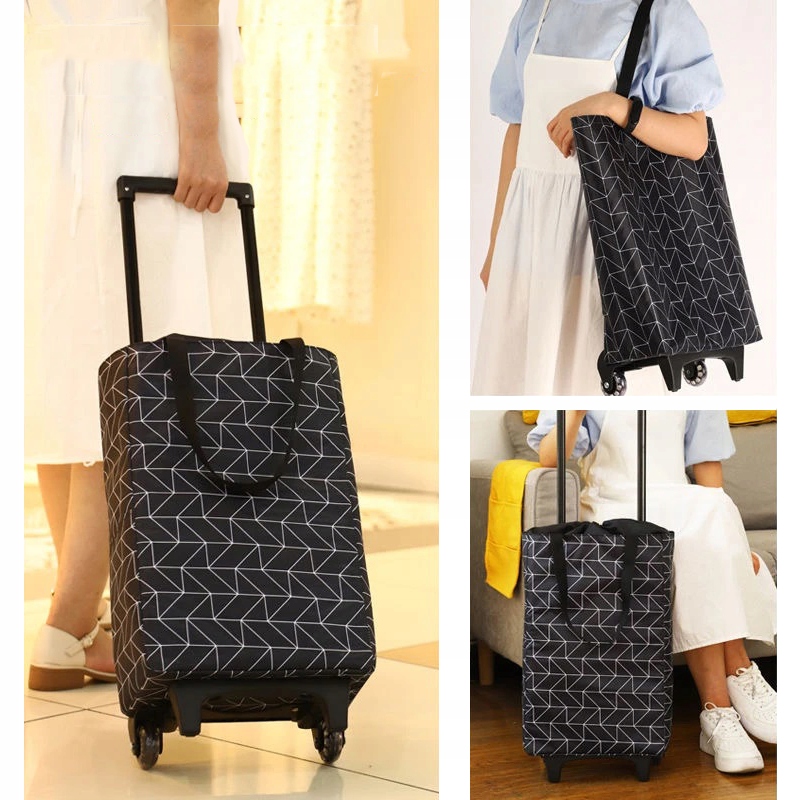 WÓZEK TORBA NA ZAKUPY NA KÓŁKACH Z TERMICZNYM WNĘTRZEM WODOODPORNY CZARNY