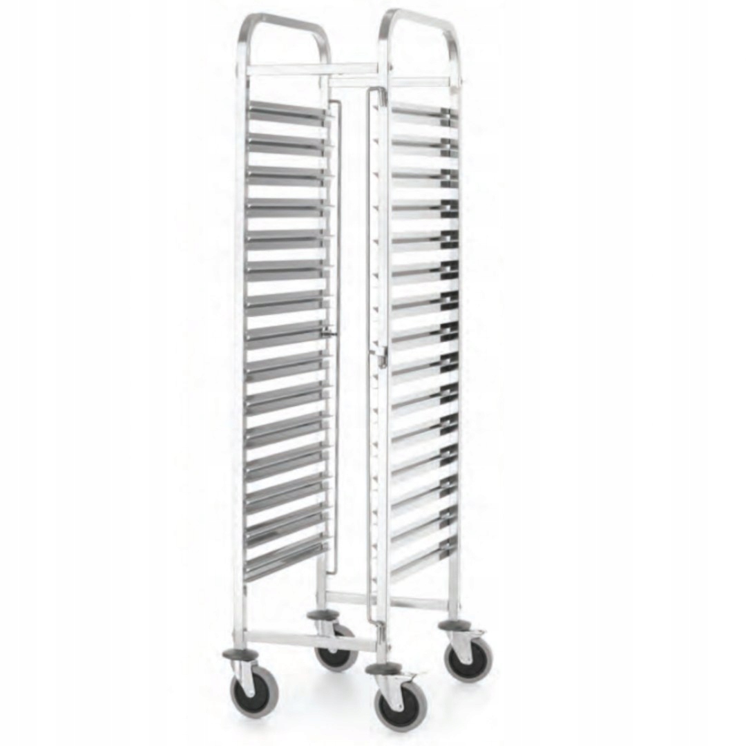 Тележка Kitchen Line для перевозки контейнеров 15xGN 1/1. Предназначен для использования в ресторанах, гостиницах, барах быстрого питания, а также на предприятиях общественного питания и свадебных домах. Конструкция изготовлена из прочной, простой в установке и чистке нержавеющей стали AISI 201.