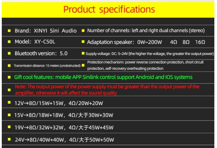 Wzmacniacz 2x50W BT XINYI 5.0 Bluetooth USB Aplikacja