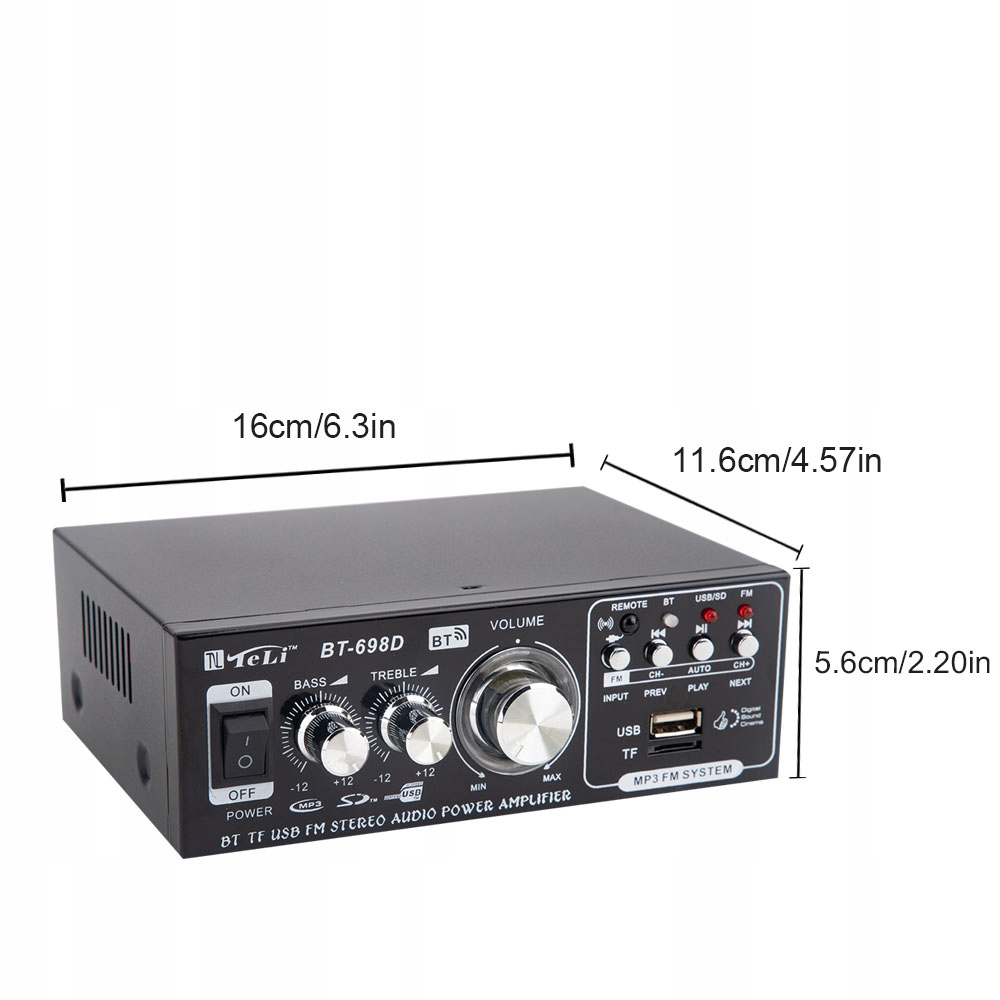 WZMACNIACZ STEREO SAMOCHODOWE BT-698D BLUETOOTH RADIO FM HIFI CYFROWY AUDIO