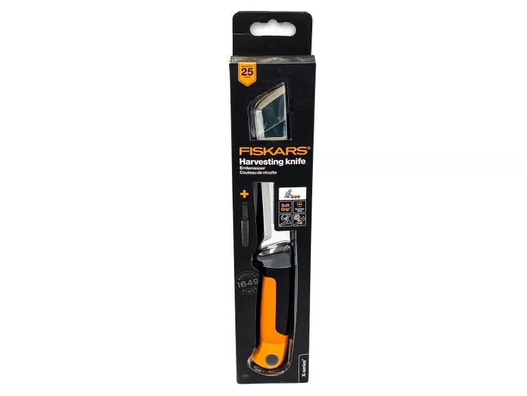 - Fiskars x-series ™ нож для сбора урожая идеально подходит для сбора овощей и фруктов, выращивающих на толстых стебли или ветвях. С зубчатым краем для резки волокнистых растений.