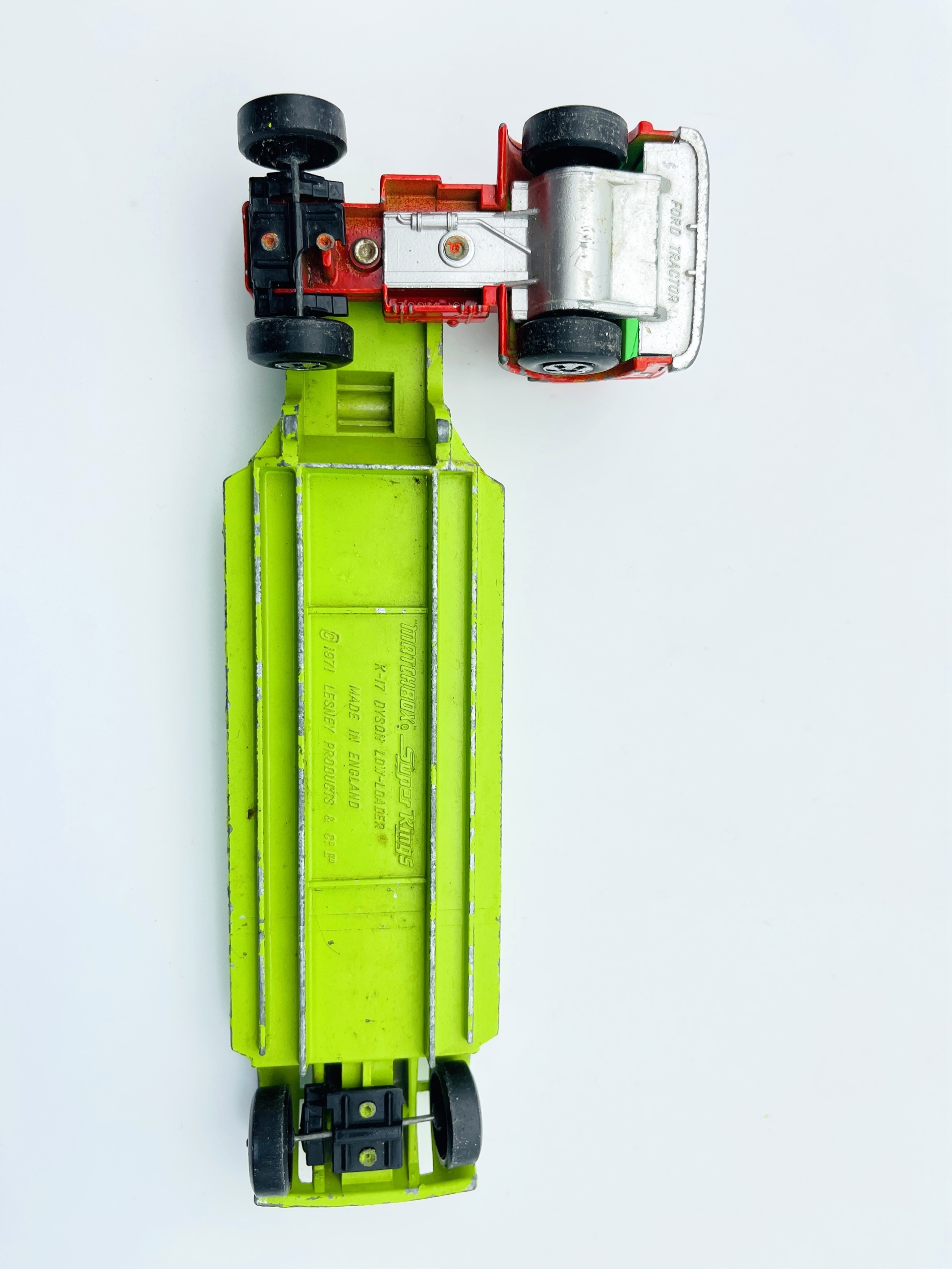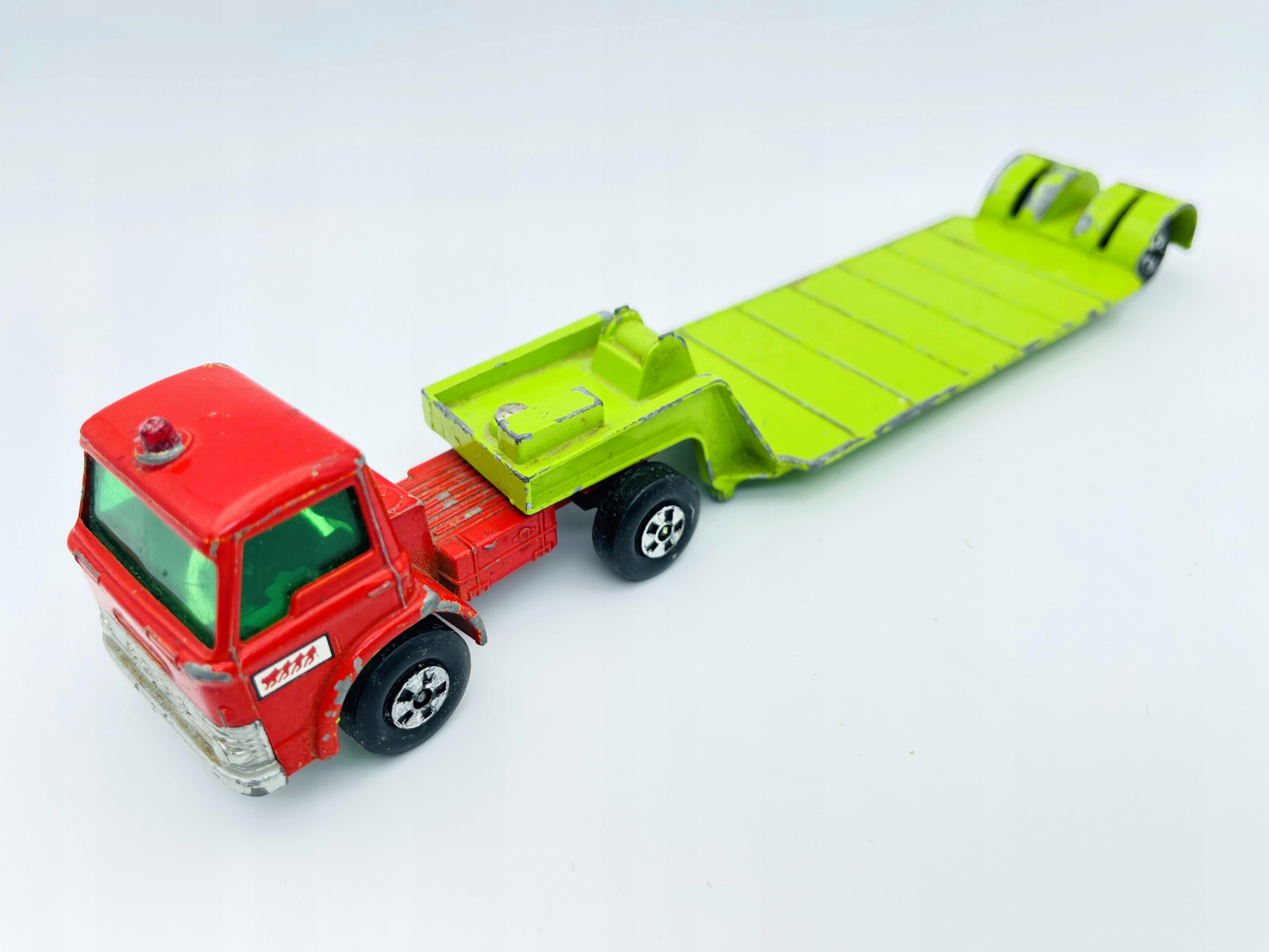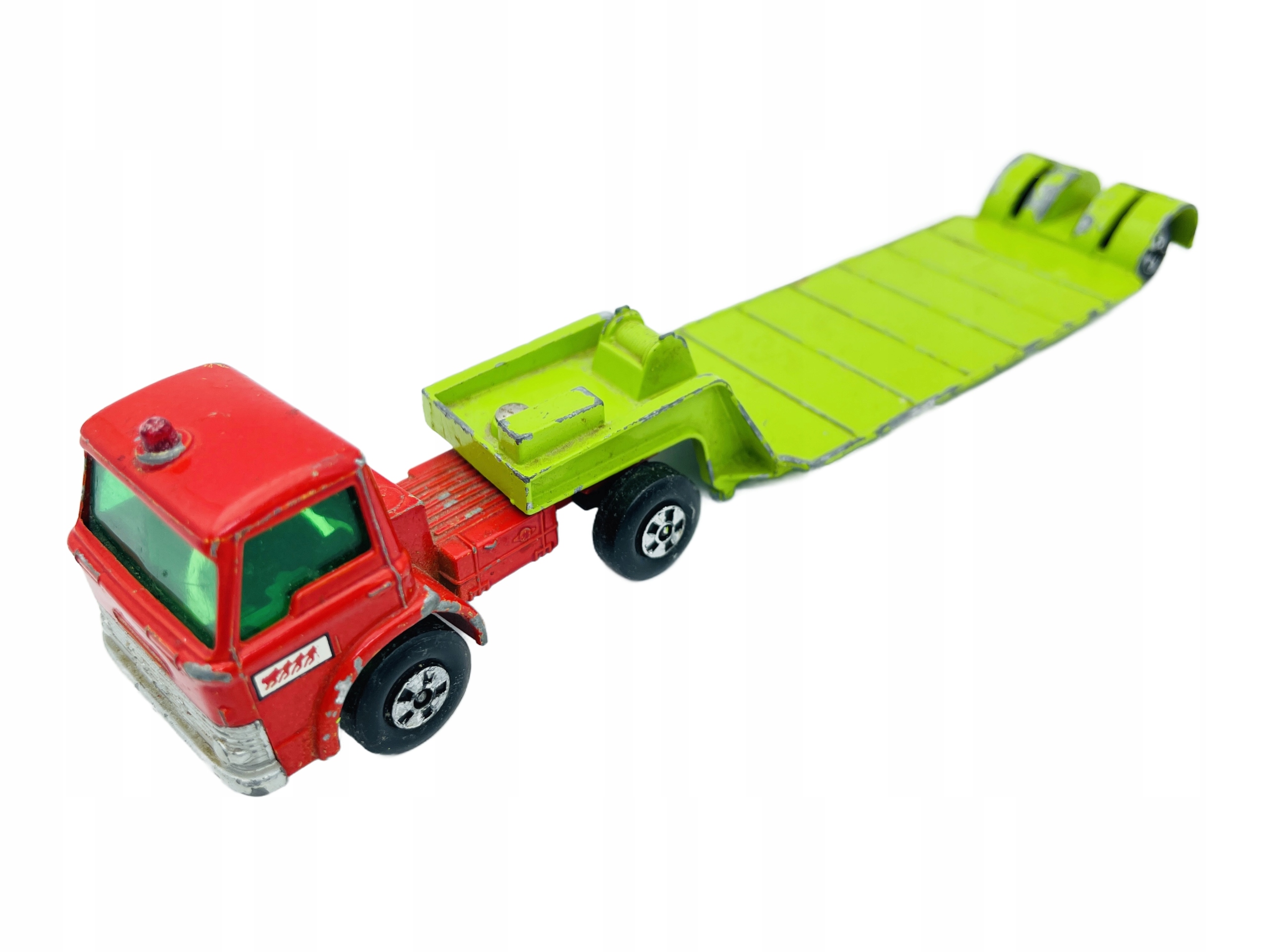 Resorak X-17 Dyson Low-Leader-это классическая модель от Matchbox, которая впечатляет его внешний вид и производительность. Основной корпус находится в интенсивном красном цвете, в то время как платформа для погрузки имеет ярко -зеленый цвет, который дает ему уникальный характер. Модель изготовлена из металла и пластика, что обеспечивает прочность и долговечность. Это модель 1971 года, которая делает его интересным объектом для коллекционеров. Несмотря на видимые признаки использования, пружина сохраняет свое очарование и может быть отличным дополнением к любой коллекции.