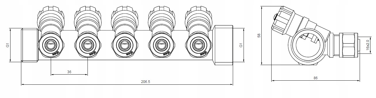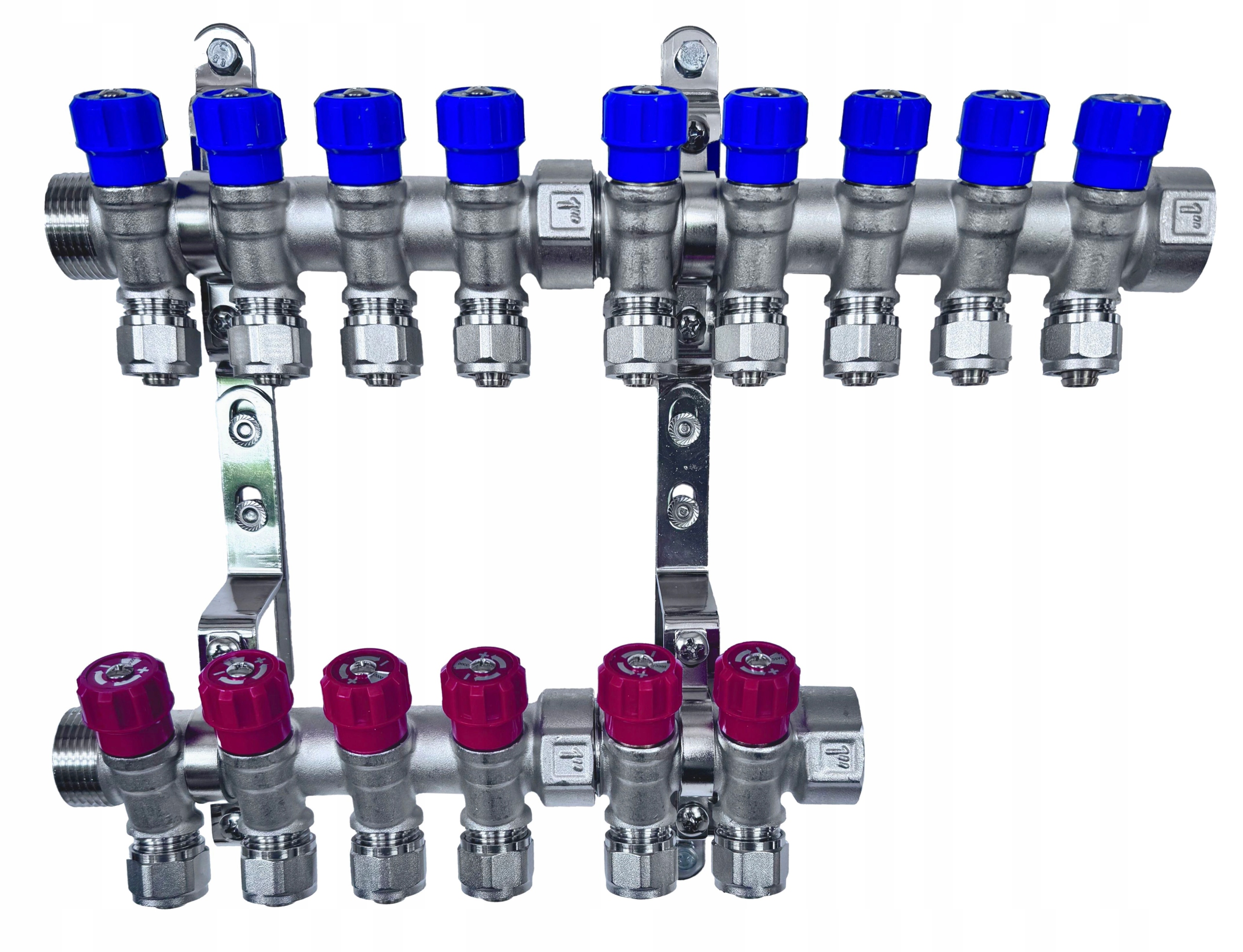Дистрибьютор 1 "x 16x2,0 мм Pex - 9 Цепи с холодной водой / секции - 6 цепей горячей воды / секции