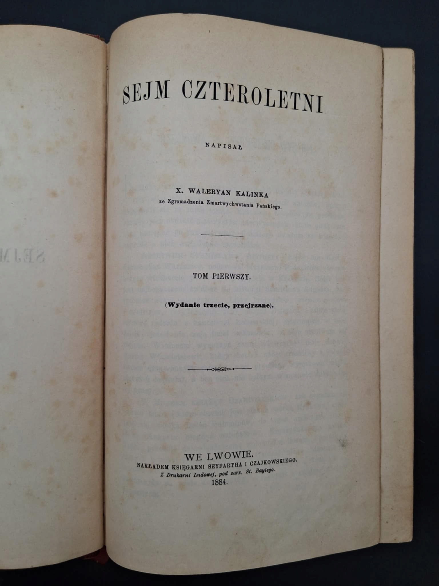 X. Waleryan Kalinka Sejm czteroletni Tom I-II Rok 1884 półskórek