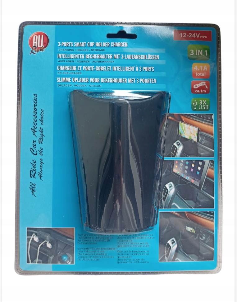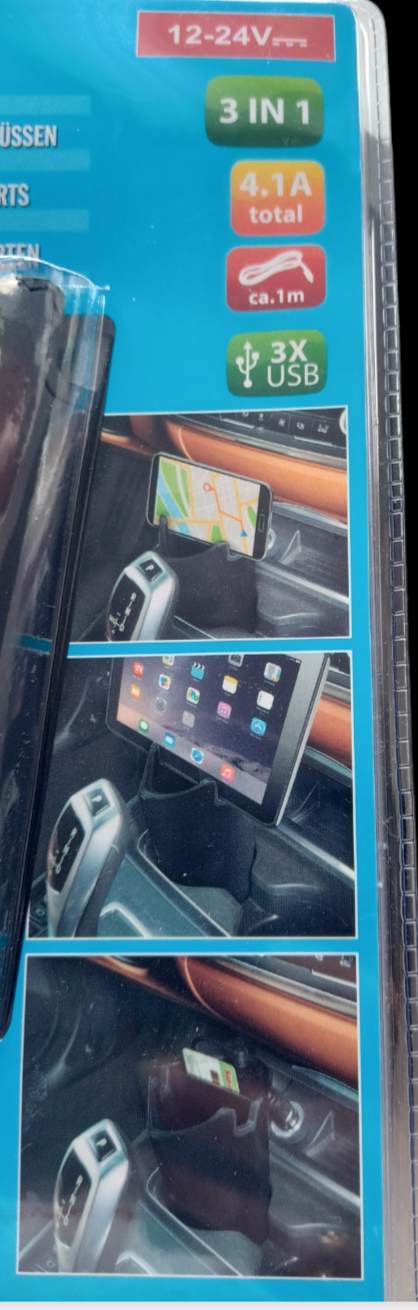 x1 АВТОМОБІЛЬНИЙ ЗАРЯДНИЙ ПРИСТРІЙ 3 В 1 ТРИМАЧ ЧАШКИ