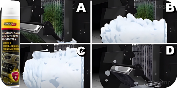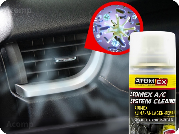 ATOMEX Foam A/C System Cleaner+ помогает очищать под давлением, удалять грибки и дезинфицировать испаритель системы кондиционирования автомобиля. Благодаря длинному кабелю с насадкой на 360° можно дотянуться до него напрямую. Средство имеет форму активной пены, которая не стекает так быстро, как другие продукты. Пена расширяется 3-4 раза, проникая и растворяя грязь. Благодаря этому он тщательно проникает в более толстые жирные слои грязи, забивающие ребра испарителя. Не повреждает алюминиевые ребра испарителя и не оставляет липких следов. Это профессиональный продукт, он уничтожает бактерии, грибки и их споры. При этом задерживая их воспроизведение. В некоторой степени он также прочищает дренажные каналы, устраняя источники неприятных запахов. Он работает долговременно, очищает и дезинфицирует, а не просто освежает. Пакета должно хватить на 2 профилактические процедуры при однозонном кондиционировании, если не требуются повторные действия или кондиционер многозонный. Производитель рекомендует проводить очистку и дезинфекцию этим препаратом 2 раза в год.