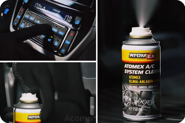 Лучше всего использовать с продуктом XADO Atomex A/C System Cleaner (предложение 15691152505), который удаляет грибки, дезинфицирует и дезодорирует систему вентиляции и кабину водителя, дезинфицирует весь контур системой кондиционирования воздуха.