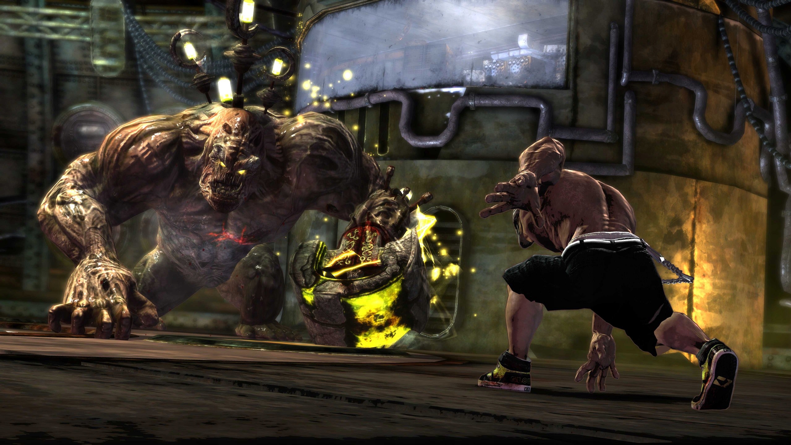 Римейк игры Splatterhouse, вышедшей в 1988 году на японских аркадных автоматах в виде кровавой игры beat'em up. Из-за своей огромной жестокости и противоречивых врагов многие считали эту игру многолетней давности прародительницей компьютерных игр ужасов. Как и в оригинале, в обновленной версии Splatterhouse мы играем роль Рика Тейлора, студента, пытающегося спасти свою девушку Дженнифер, которая исчезла после входа в загадочный особняк. К сожалению, больших шансов в борьбе с населяющими его потусторонними существами у него нет, единственным спасением кажется заманчивое предложение маски, обещающей ему огромную силу. Не видя другого выхода, он соглашается носить его и через мгновение превращается в существо разрушения. Конечно, наша роль – помочь ему в этом. В поисках избранницы Тейлора мы будем уничтожать целые сонмы различных видов демонов и монстров. Однако то, как мы это сделаем, зависит только от нашей изобретательности и предпочитаемой тактики, ведь обширная боевая система предлагает массу возможностей. Рик может выполнять мощные комбо как голыми руками, так и с помощью многочисленного временного оружия. Ничто не мешает вам, если у вас нет оружия, оторвать голову или конечность одному из ваших противников, а затем зарезать им его товарищей. Те, кто вместо того, чтобы самому пачкать руки, предпочитает использовать других, могут использовать особые способности нашего героя и воскрешать поверженных противников, чтобы они сражались на их стороне. Вместо традиционной шкалы здоровья создатели решили ввести визуальную систему состояния здоровья. Когда он получает повреждения, тело Рика распадается, обнажая кости и внутренние органы. Чтобы регенерировать, мы должны использовать силу маски. В этот момент мы видим, как изувеченный персонаж медленно восстанавливает свое тело. Безусловно, новый Splatterhouse, как и оригинал, — очень брутальная и кровавая постановка, хотя сейчас она уже не так противоречива, как раньше. Визуально игра довольно среднего уровня, модели персонажей и окружение не очень детализированы.