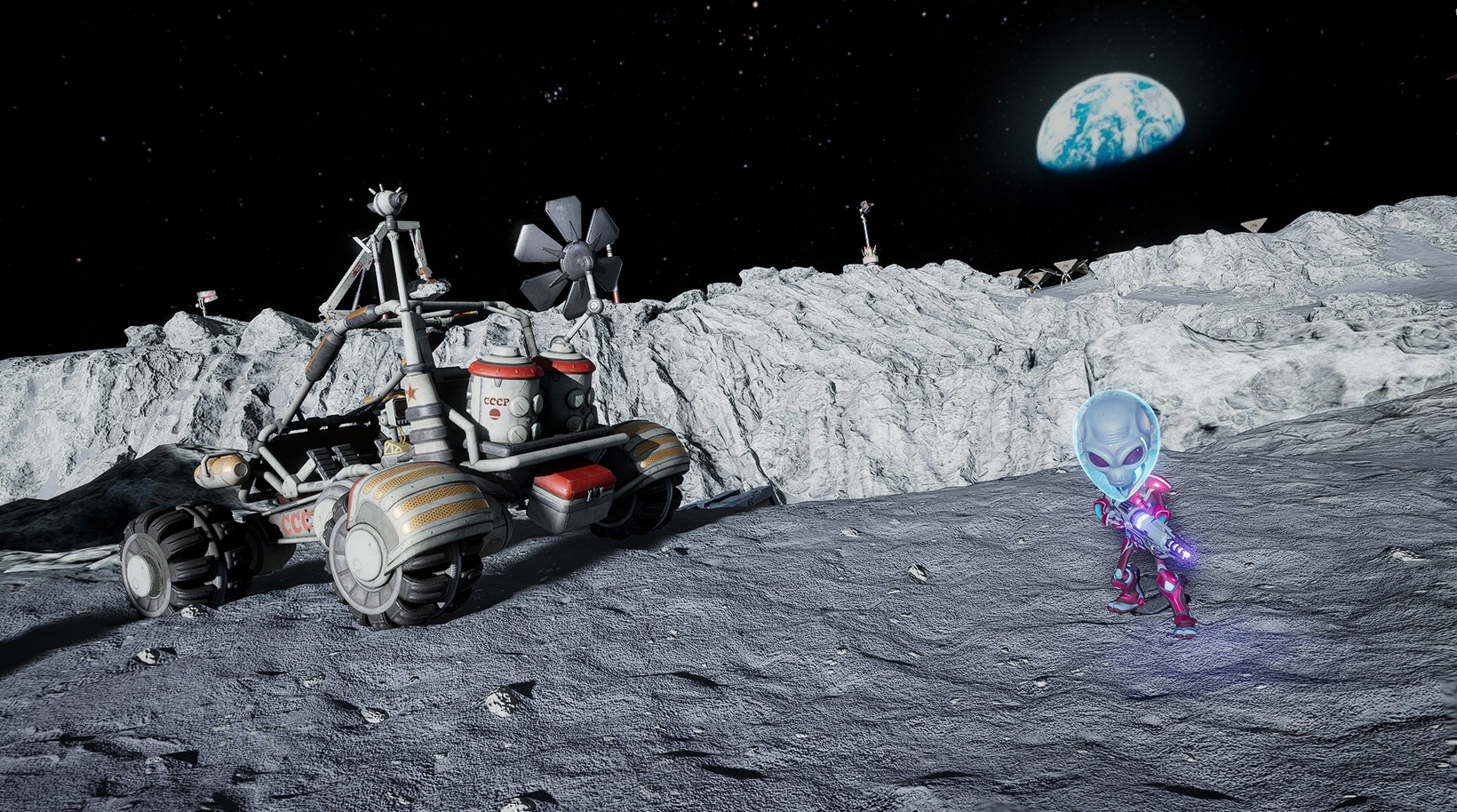 Уничтожьте всех людей! 2: Reprobed — это юмористический экшен с открытым миром, в котором вы играете за инопланетянина Крипто-137, возвращающегося на Землю, чтобы сеять хаос и сражаться с правительственными учреждениями в 1960-х годах. Доступно на Xbox One с августа 2022 года.