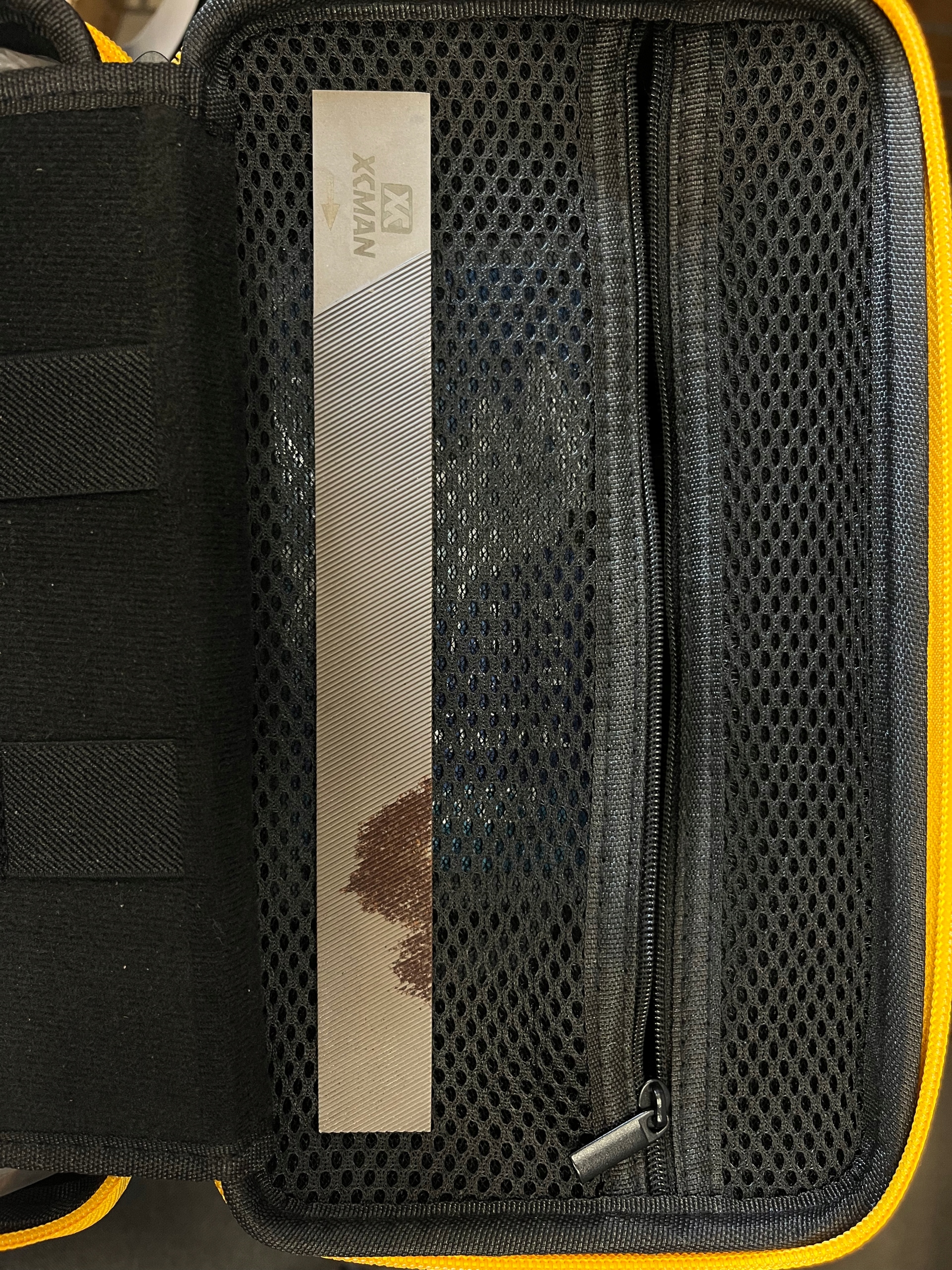 Размеры в открытом виде: Д 23,5 * Ш 13,6 * В 8,5 см (Д 9,25 * Ш 5,35 * В 3,35 дюйма). Здесь достаточно места для дополнительных инструментов Youfelf, таких как лыжная смазка, направляющая для файлов и т. д.