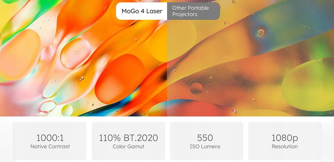 - xgimi mogo 4 лазер - компактный проектор Full HD с максимальной яркости 550 люмен ISO.