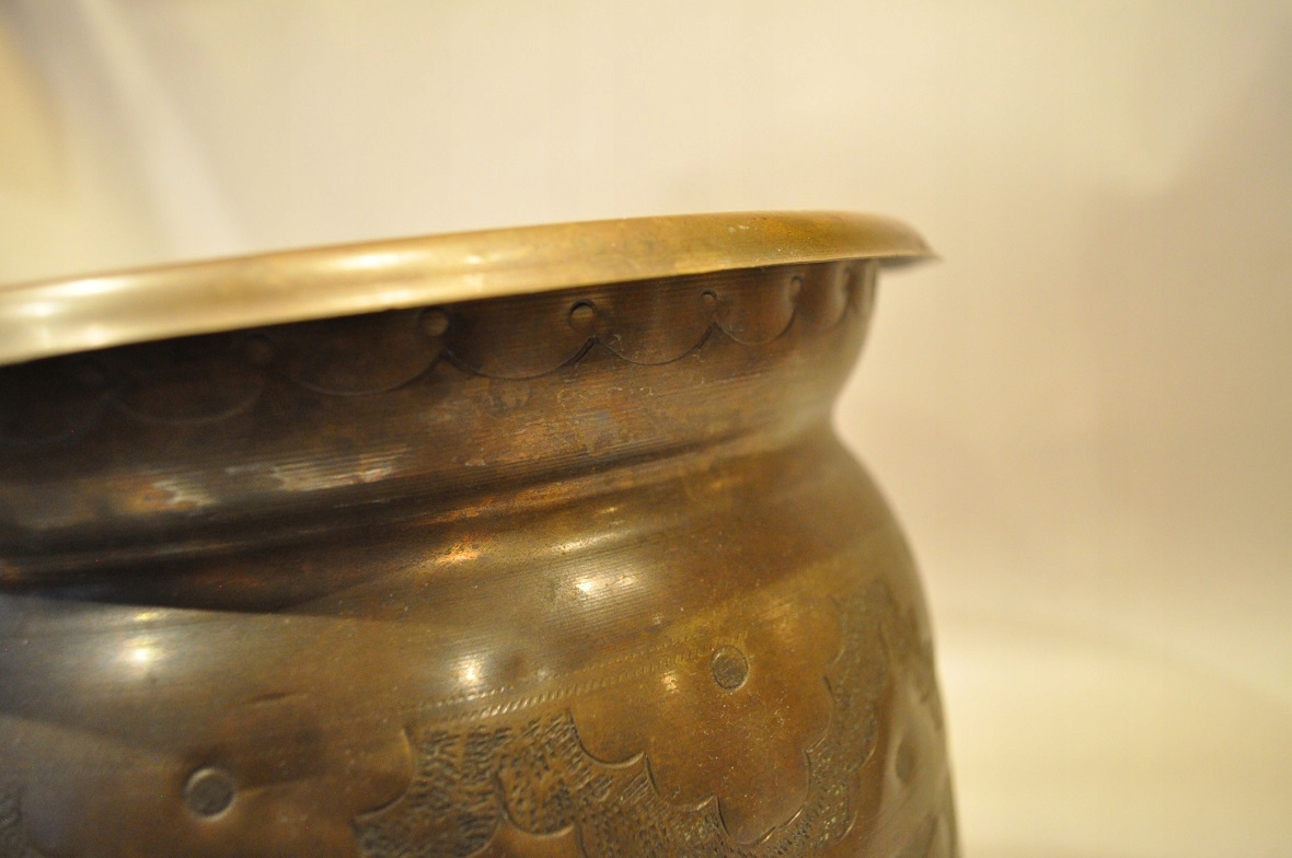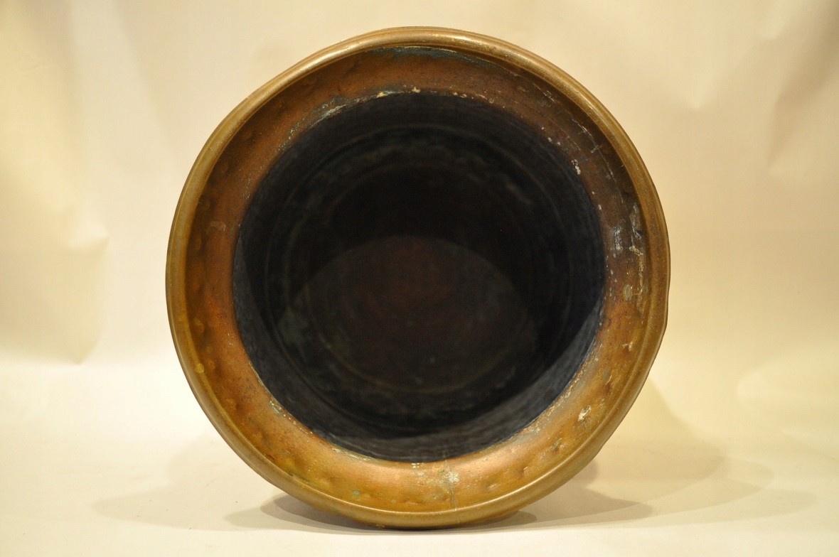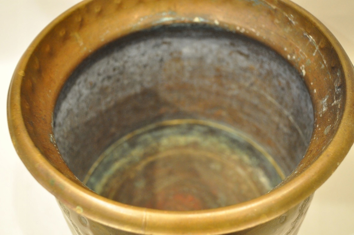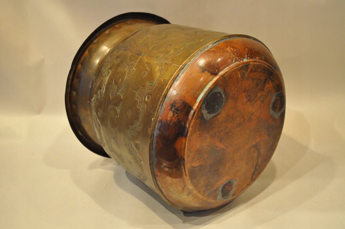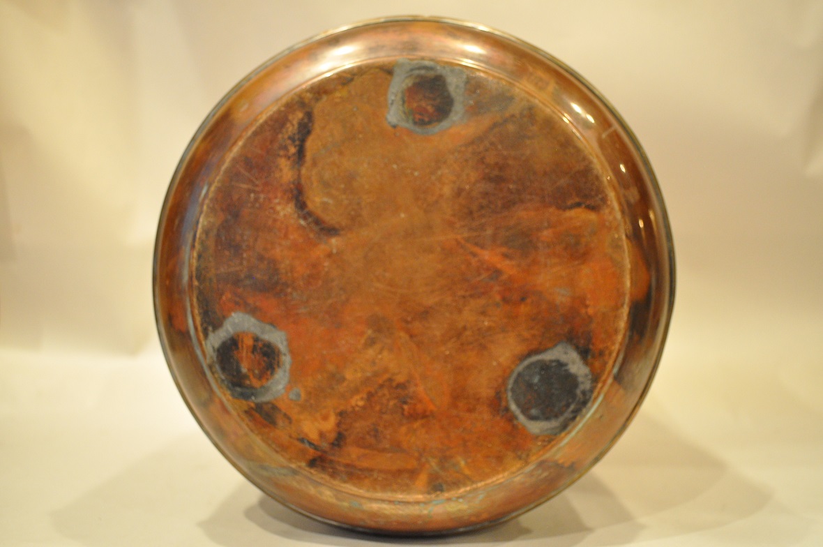 горшок и дно покрыто старой темной патиной.