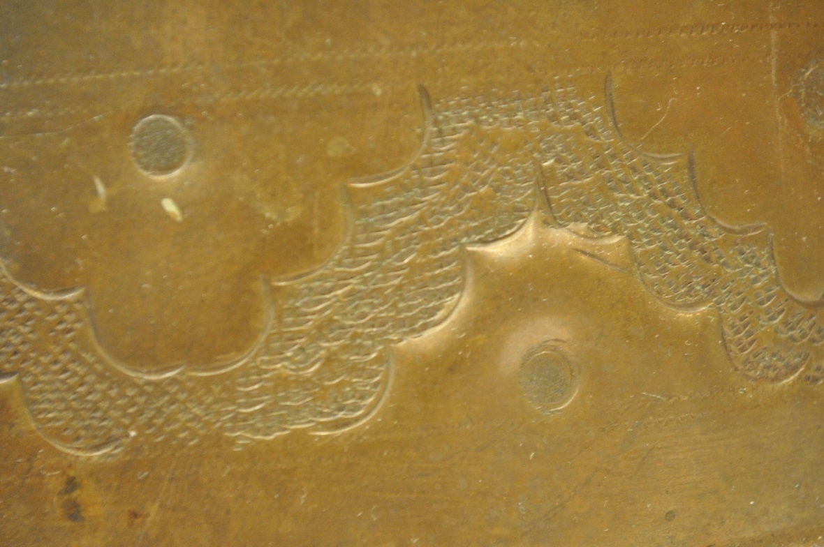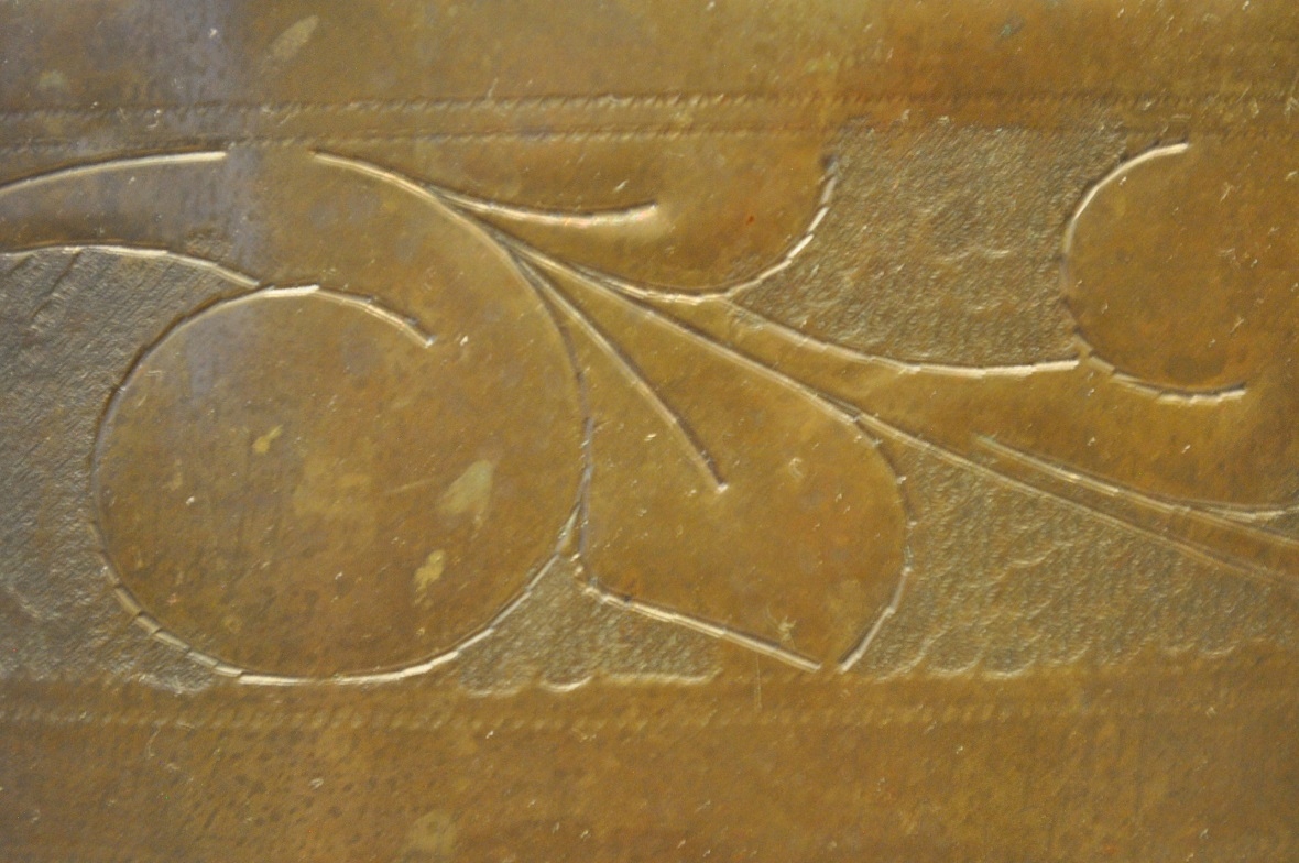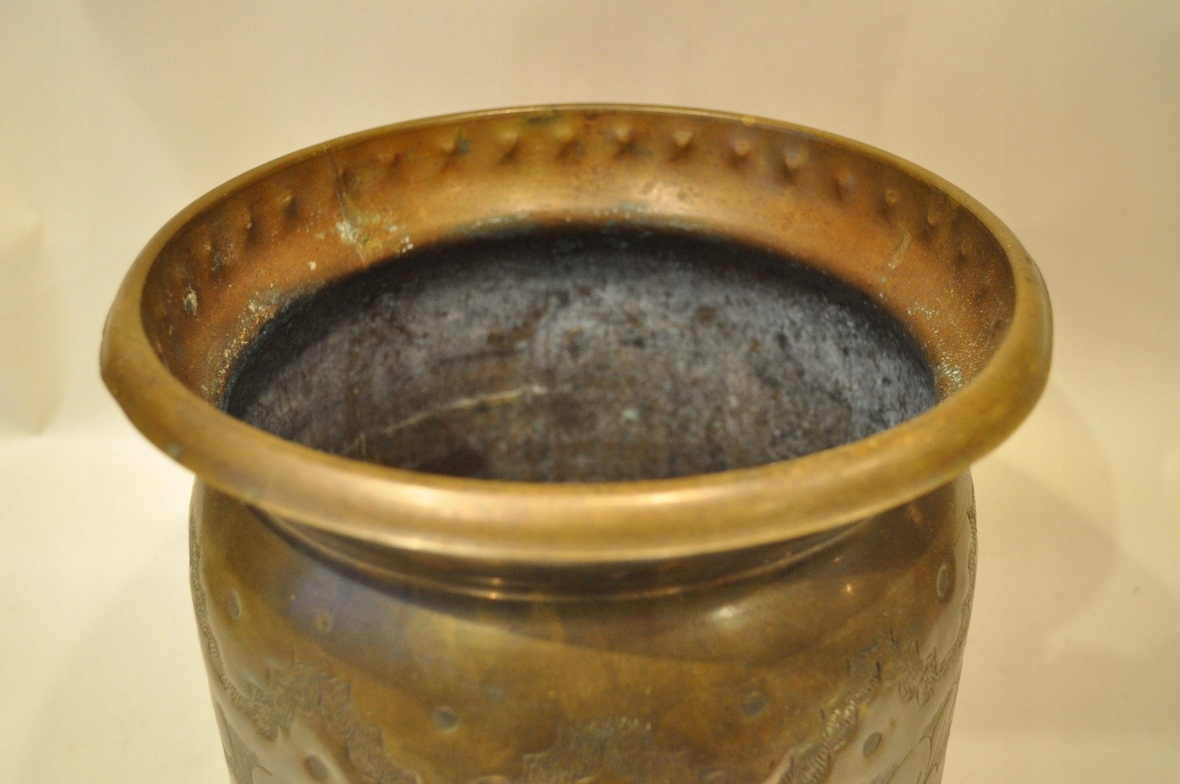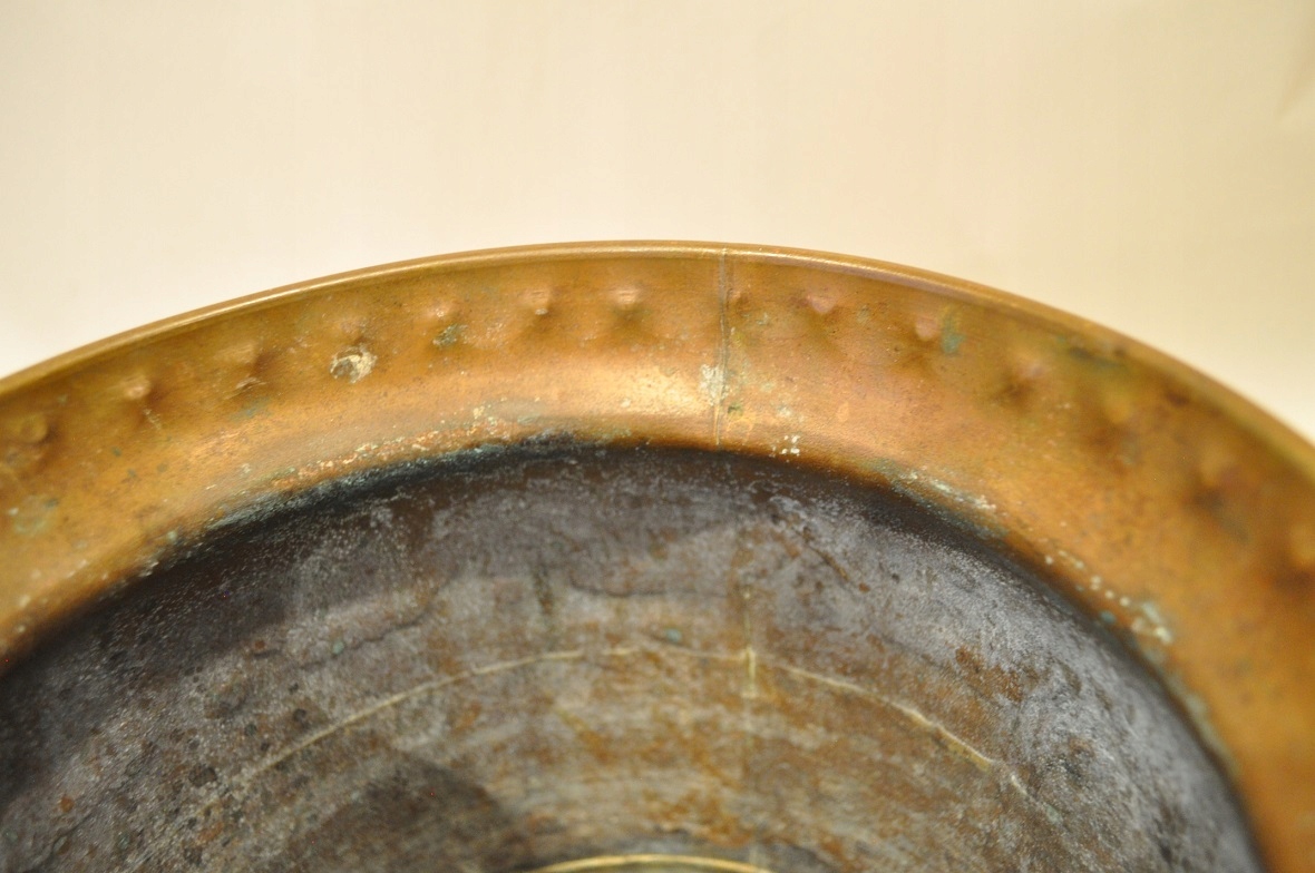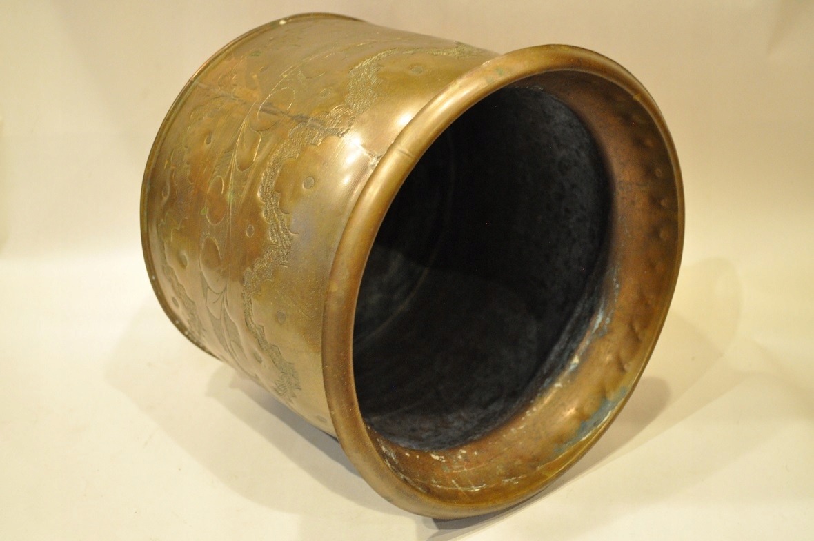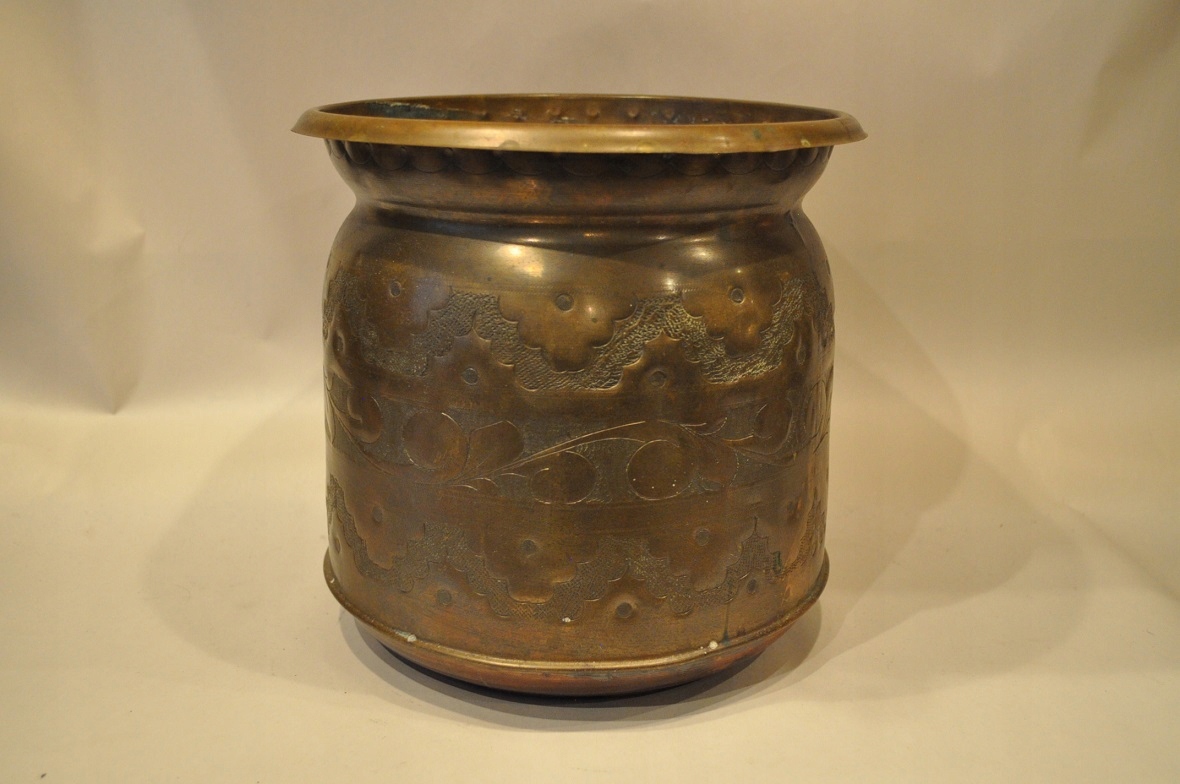 горшок и дно покрыто старой темной патиной.
