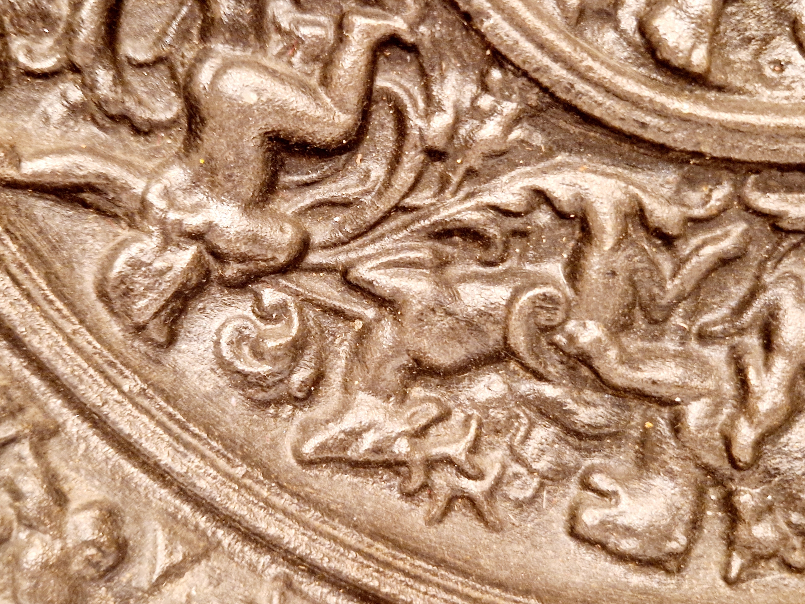 чугун, окрашенный черным лаком (время ремонта/рисования неизвестно).